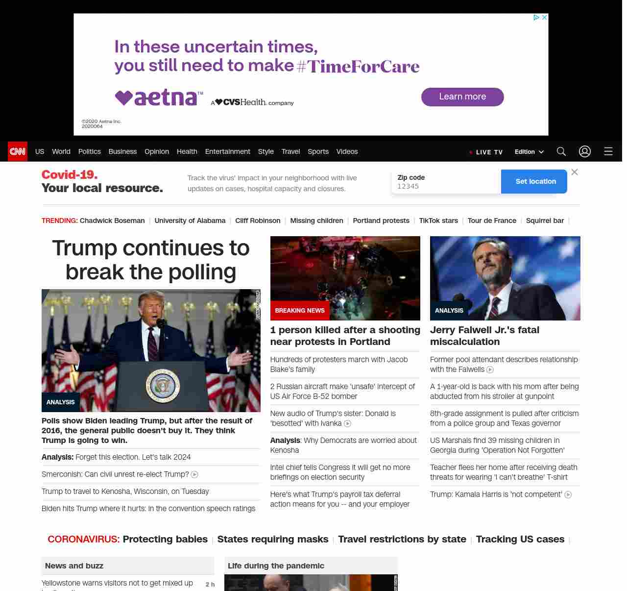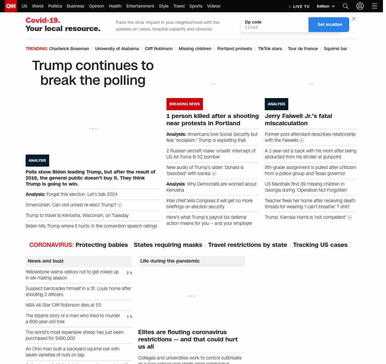 || screaming-banner-text banner-text-size–char-47″ data-analytics=”_list-hierarchical-xs_article_”> 1 person killed after a shooting near protests in Portland ||=”banner-text screaming-banner-text banner-text-size–char-38″ data-analytics=”_list-hierarchical-xs_article_”>Trump continues to break the polling