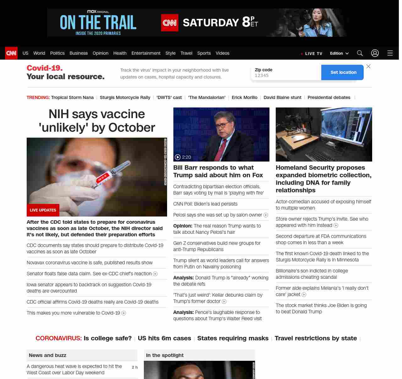 || screaming-banner-text banner-text-size–char-41″ data-analytics=”_list-hierarchical-xs_hyperlink_”> NIH says vaccine ‘unlikely’ by October ||”},”chartbeat”:{“sections”:””},”branding_content_page”:”cnn-dnc-live-blog”,”branding_content_zone”:[“default”],”branding_content_container”:[“default”,”cnn-money-markets”,”space-and-science”,”project-planet”],”branding_content_card”:[“”]} , edition: “domestic” , sourceId: ”