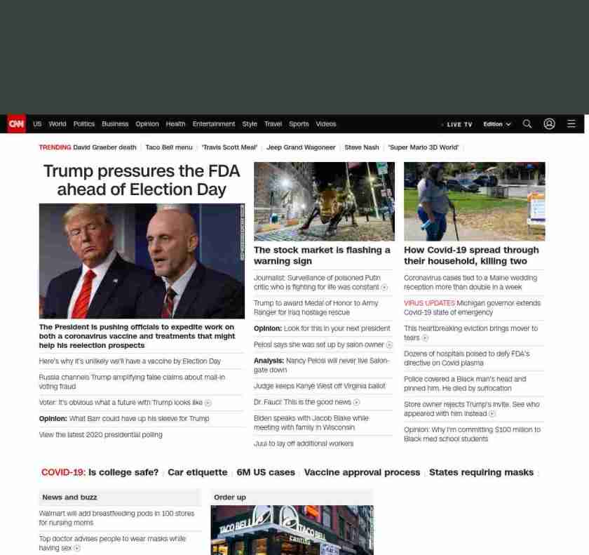 || screaming-banner-text banner-text-size–char-47″ data-analytics=”_list-hierarchical-xs_article_”> Trump pressures the FDA ahead of Election Day ||”},”chartbeat”:{“sections”:””},”branding_content_page”:”cnn-dnc-live-blog”,”branding_content_zone”:[“default”],”branding_content_container”:[“default”,”cnn-money-markets”,”space-and-science”],”branding_content_card”:[“”]} , edition: “domestic” , sourceId: ”
