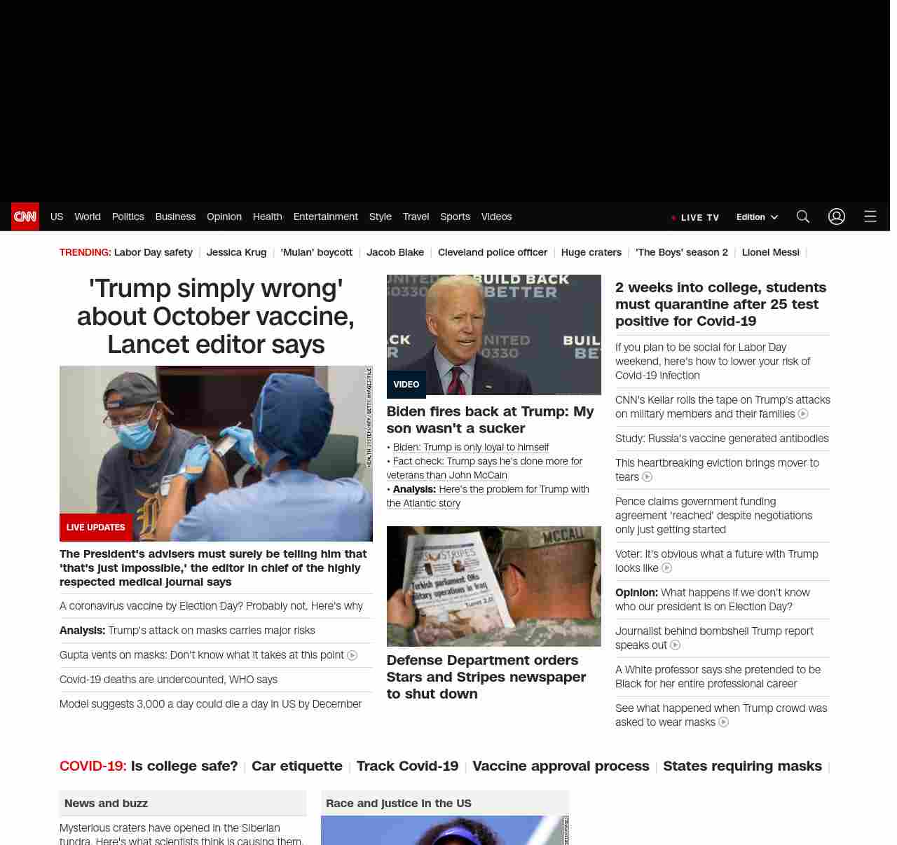 || screaming-banner-text banner-text-size–char-47″ data-analytics=”_list-hierarchical-xs_hyperlink_”> ‘Trump simply wrong’ about October vaccine, Lancet editor says ||”},”chartbeat”:{“sections”:””},”branding_content_page”:”cnn-dnc-live-blog”,”branding_content_zone”:[“default”],”branding_content_container”:[“default”,”cnn-money-markets”,”space-and-science”,”cnn-heroes-hp”],”branding_content_card”:[“”]} , edition: “domestic” , sourceId: ”