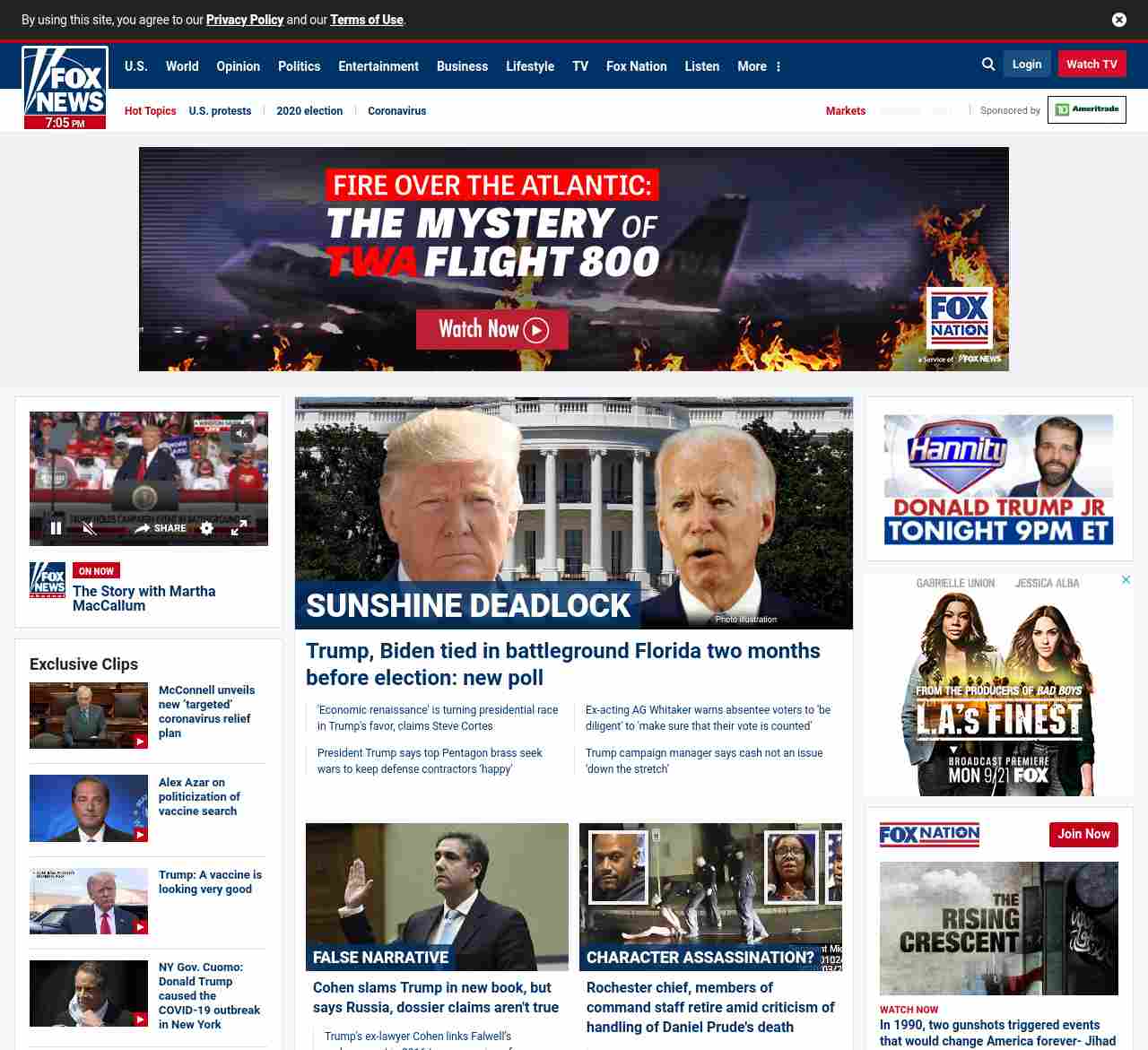 FN: [[SUNSHINE DEADLOCK]] Trump, Biden tied in battleground Florida two months before election: new poll ((lubuntu at wor3))