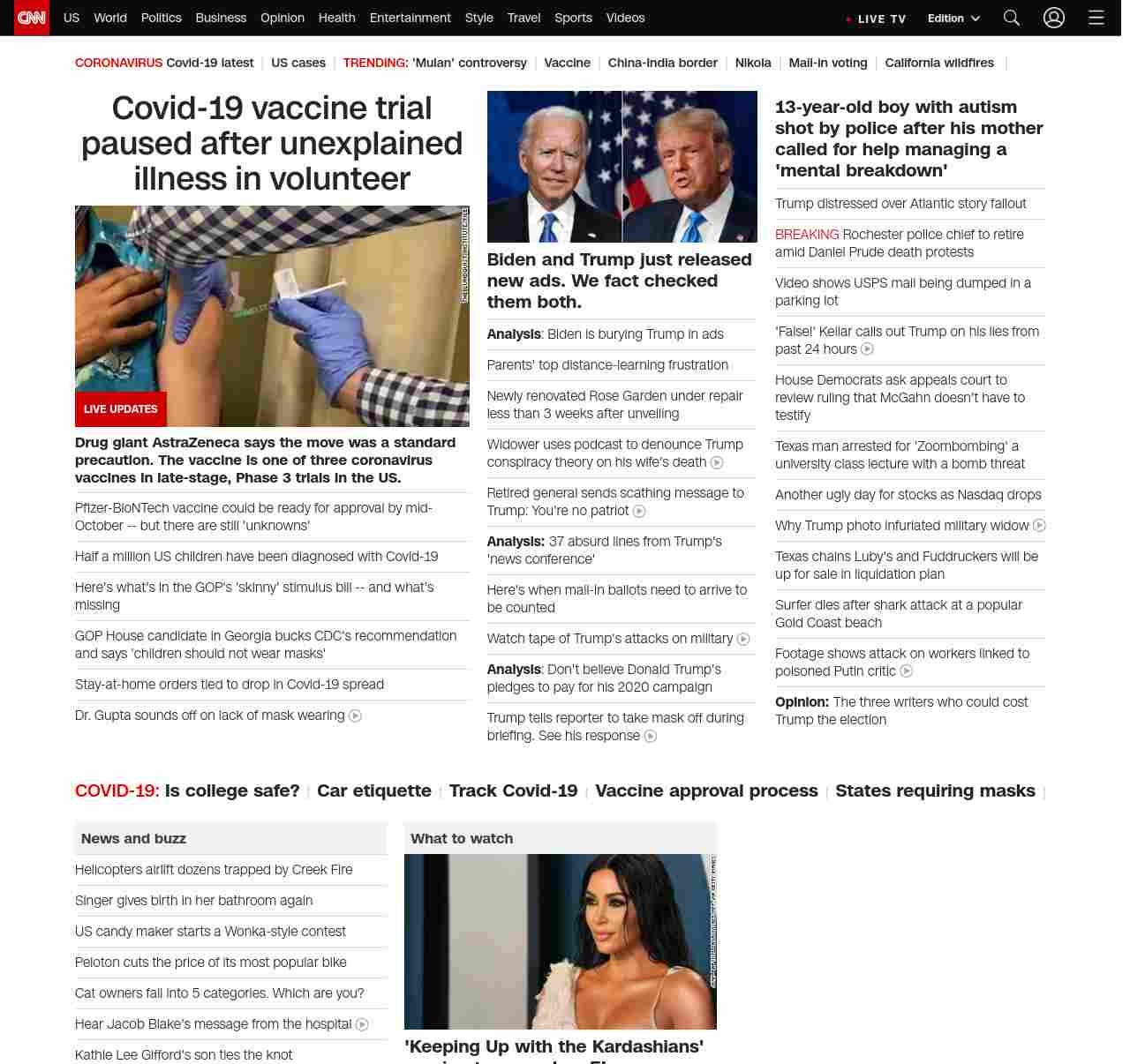 CNN1: FOXVCNN=|Covid-19 vaccine trial paused after unexplained illness in volunteer| ((lubuntu at wor3))