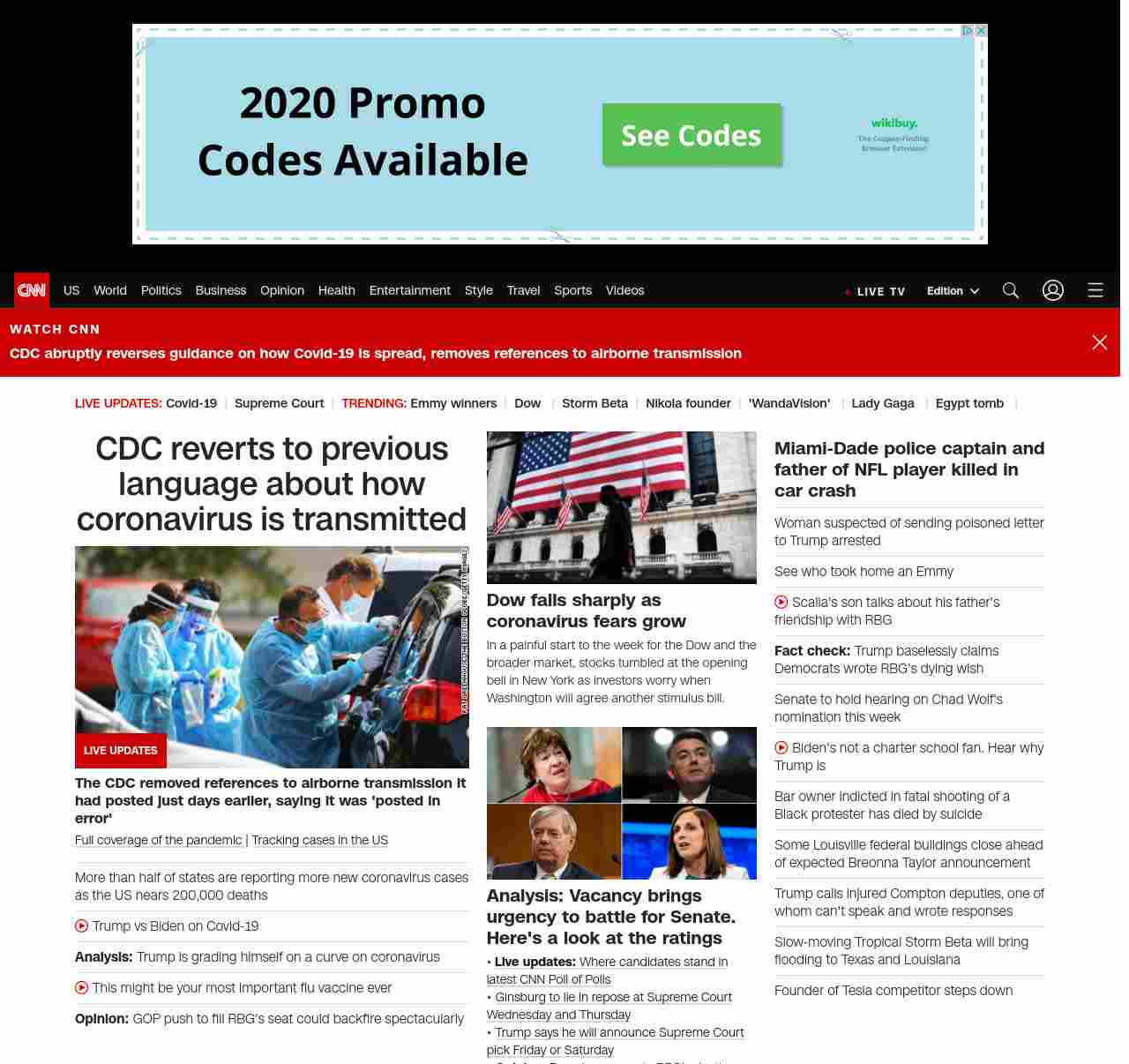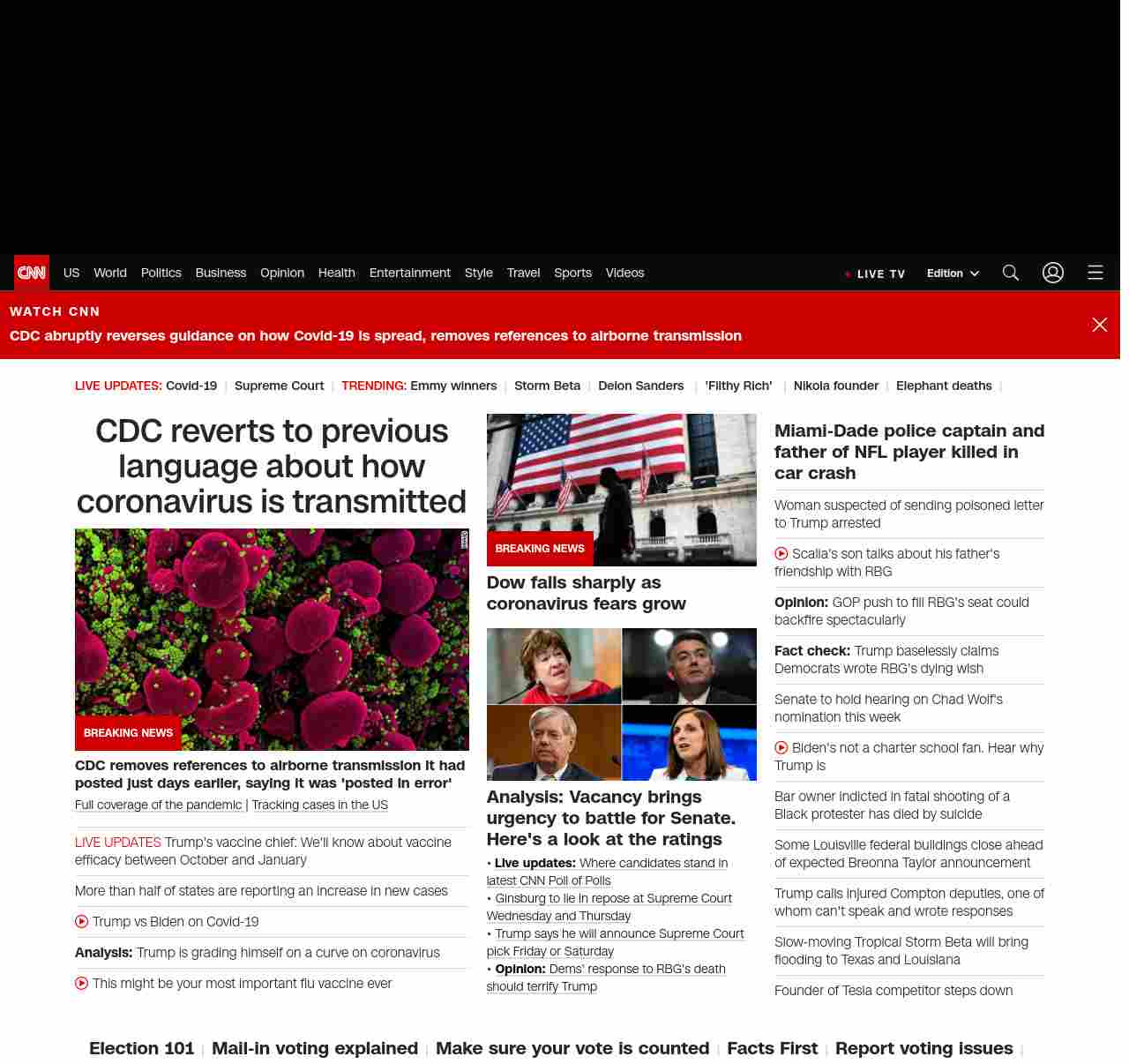 CNN1: FOXVCNN=|CDC reverts to previous language about how coronavirus is transmitted| ((lubuntu at wor3))