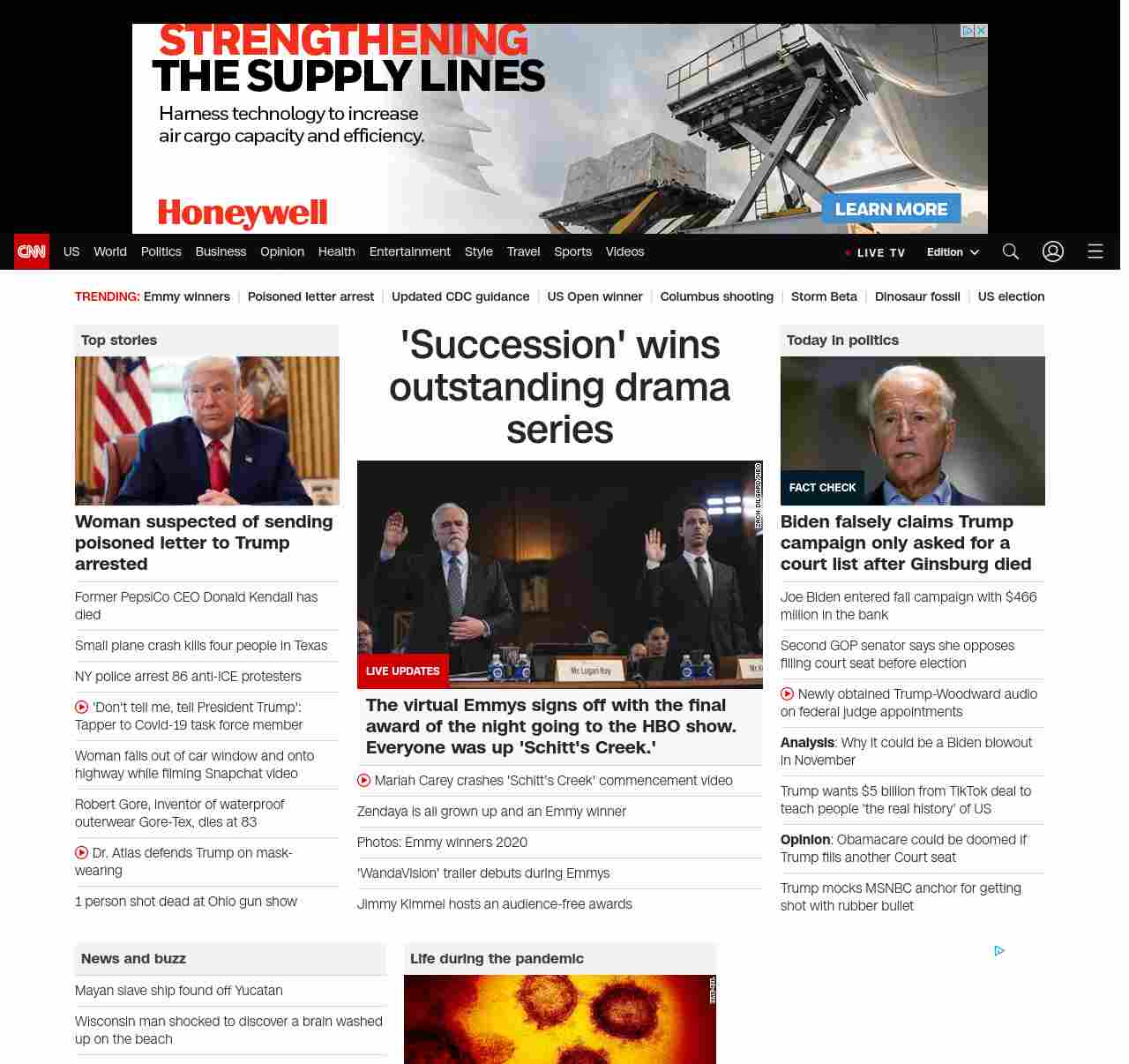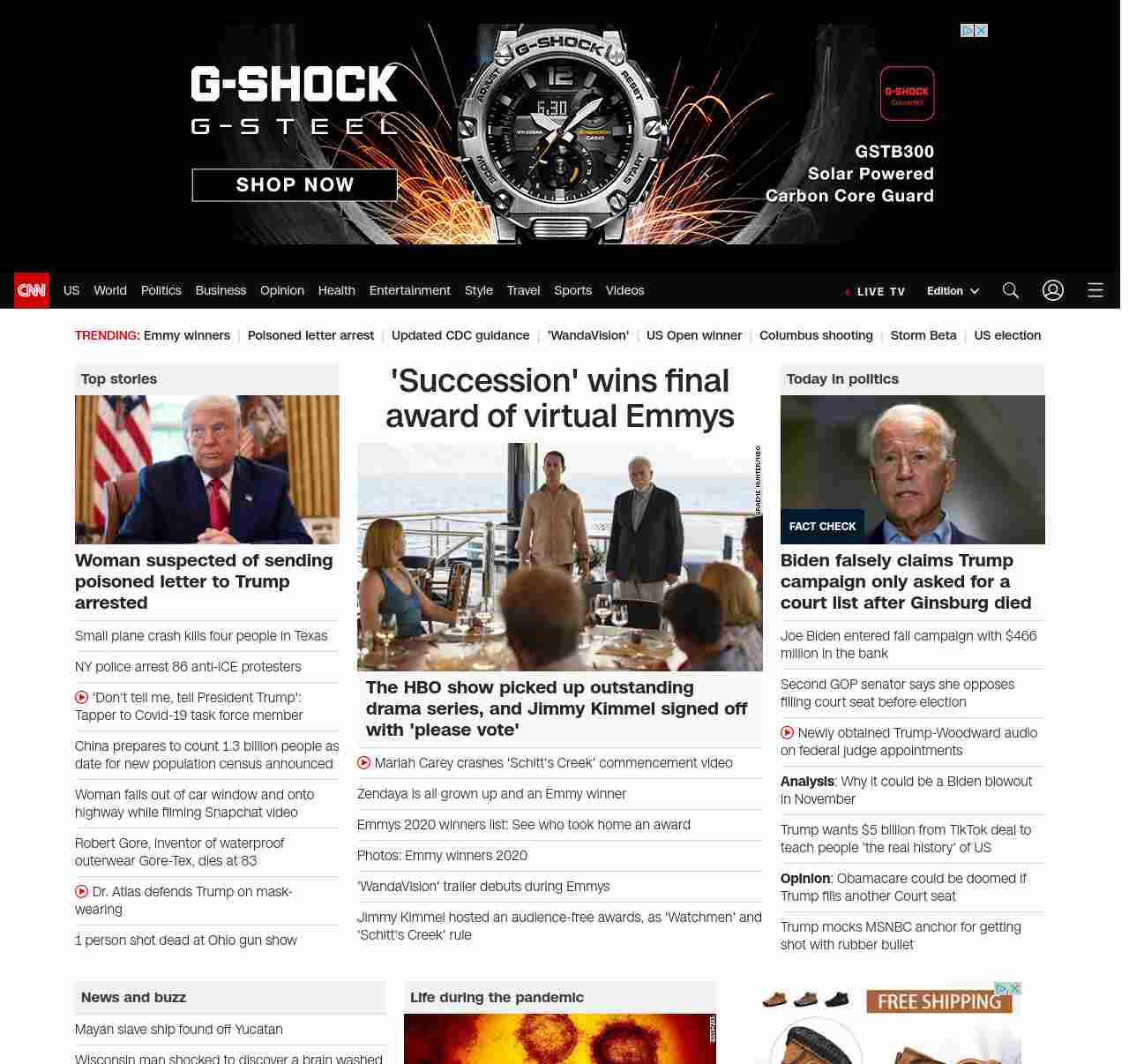 CNN1: FOXVCNN=|’Succession’ wins final award of virtual Emmys| ((lubuntu at wor3))