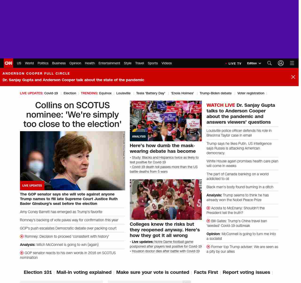 CNN1: FOXVCNN=|Collins on SCOTUS nominee: ‘We’re simply too close to the election’| ((lubuntu at wor3))