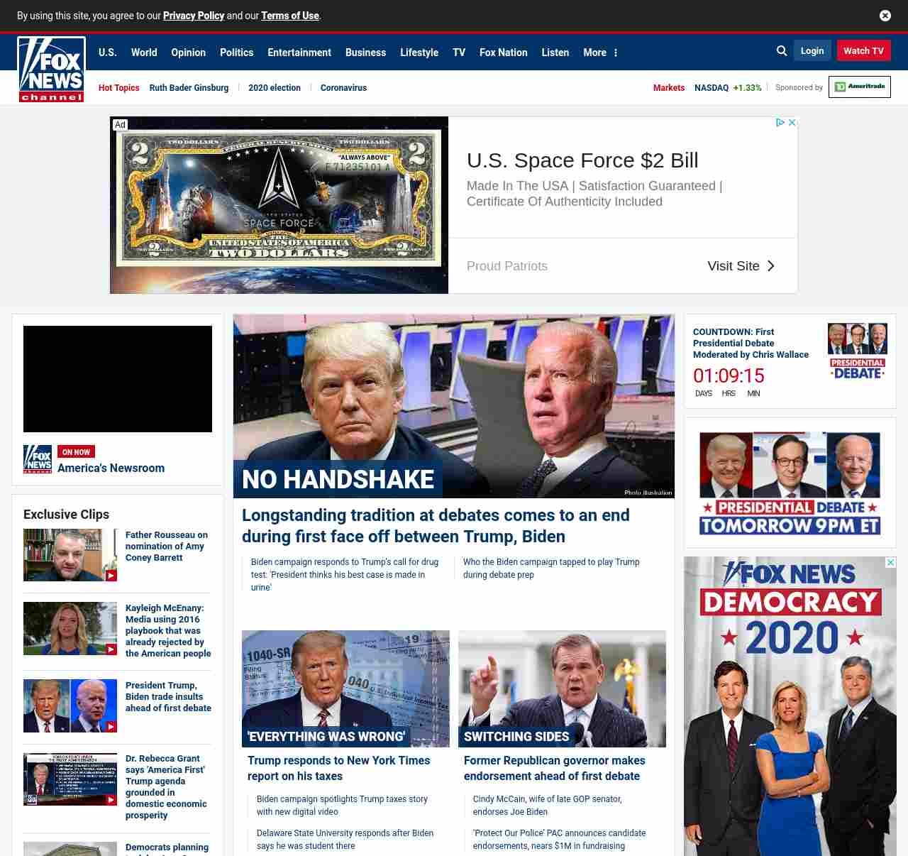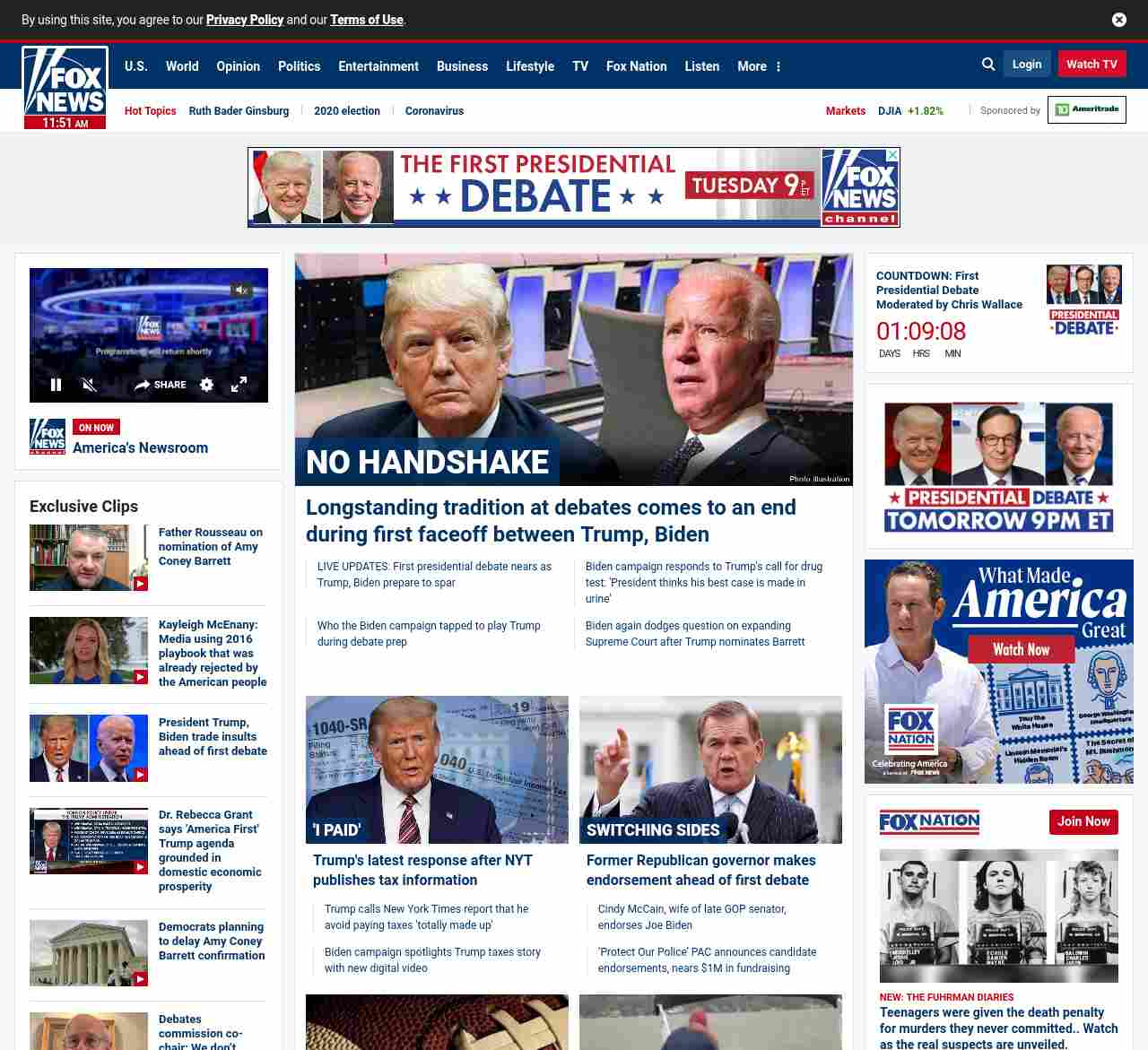 FN: [[NO HANDSHAKE]] Longstanding tradition at debates comes to an end during first faceoff between Trump, Biden</a ((lubuntu at wor3))