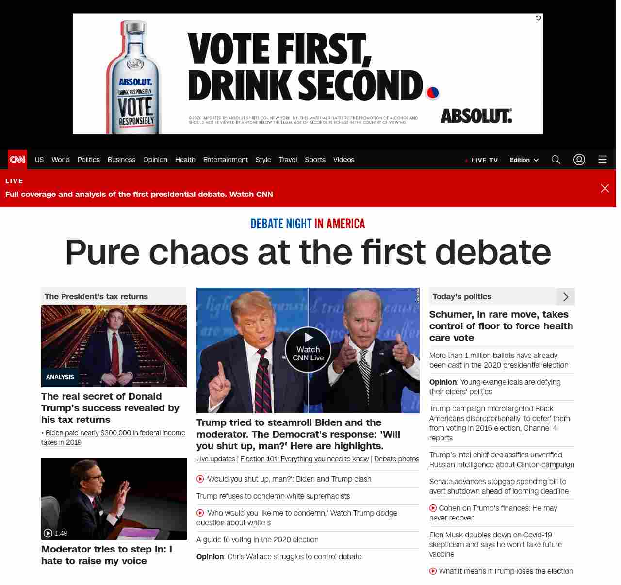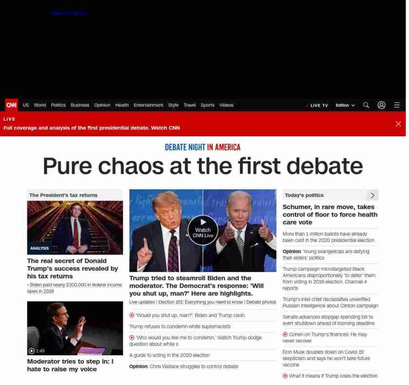 || banner-text–natural”> Pure chaos at the first debate ||”},”chartbeat”:{“sections”:””},”branding_content_page”:”presidential-debate”,”branding_content_zone”:[“default”],”branding_content_container”:[“default”,”cnn-money-markets”,”space-and-science”,”champions-for-change”,”cnn-heroes-hp”],”branding_content_card”:[“”]} , edition: “domestic” , sourceId: ”