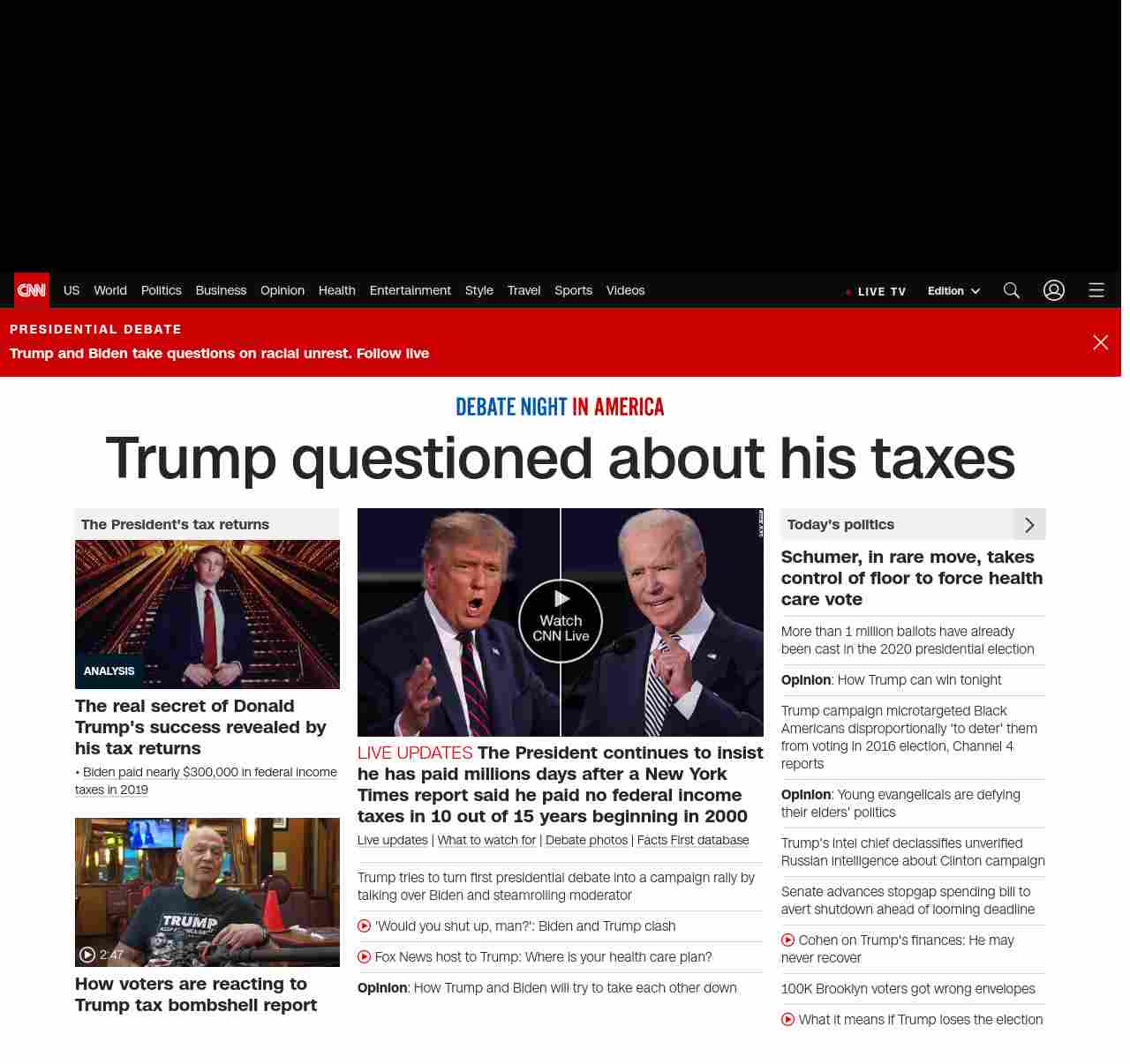|| banner-text–maximized banner-text-size–char-35″> Trump questioned about his taxes ||”},”chartbeat”:{“sections”:””},”branding_content_page”:”presidential-debate”,”branding_content_zone”:[“default”],”branding_content_container”:[“default”,”cnn-money-markets”,”space-and-science”,”champions-for-change”,”cnn-heroes-hp”],”branding_content_card”:[“”]} , edition: “domestic” , sourceId: ”