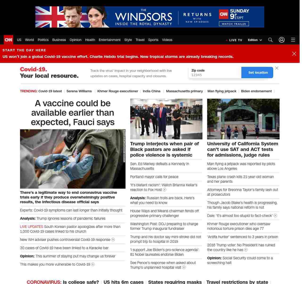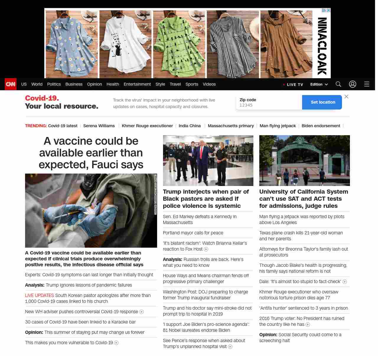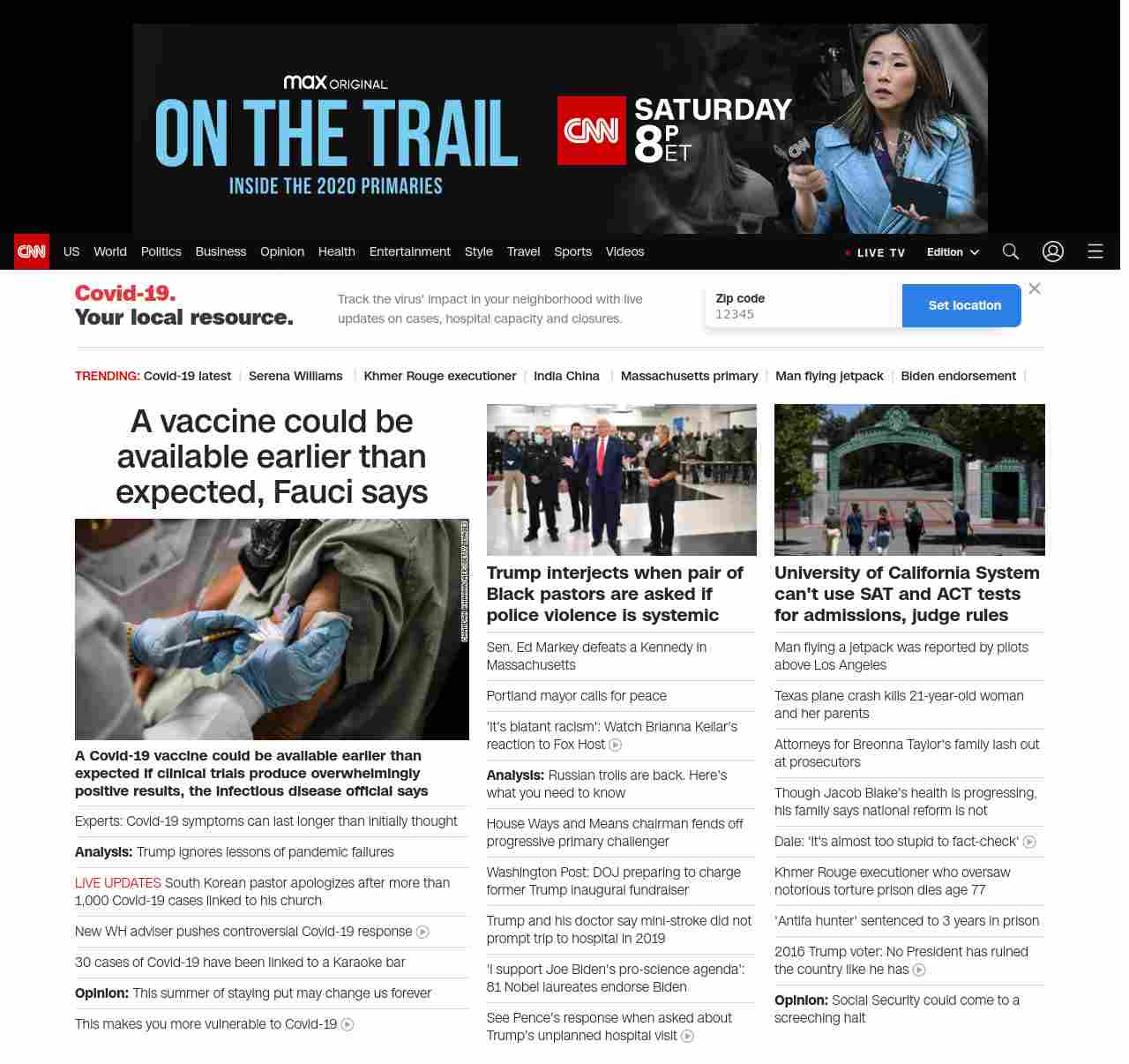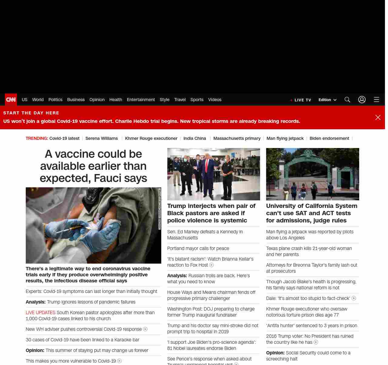 || screaming-banner-text banner-text-size–char-47″ data-analytics=”_list-hierarchical-xs_article_”> A vaccine could be available earlier than expected, Fauci says ||”},”chartbeat”:{“sections”:””},”branding_content_page”:”cnn-dnc-live-blog”,”branding_content_zone”:[“default”],”branding_content_container”:[“default”,”cnn-money-markets”,”space-and-science”,”project-planet”],”branding_content_card”:[“”]} , edition: “domestic” , sourceId: ”