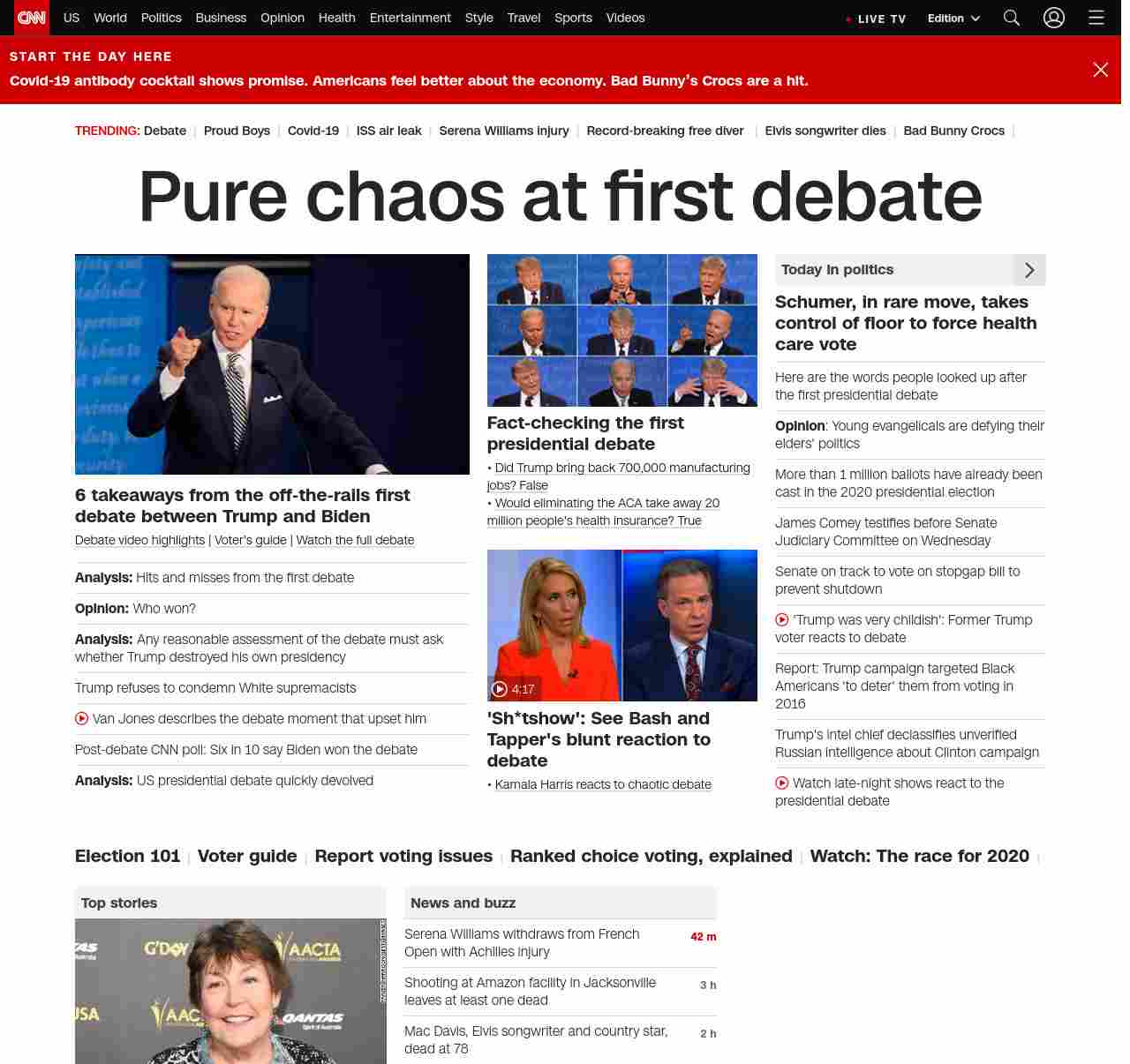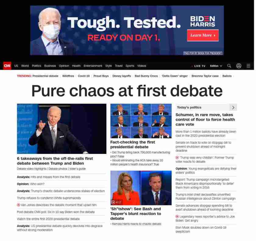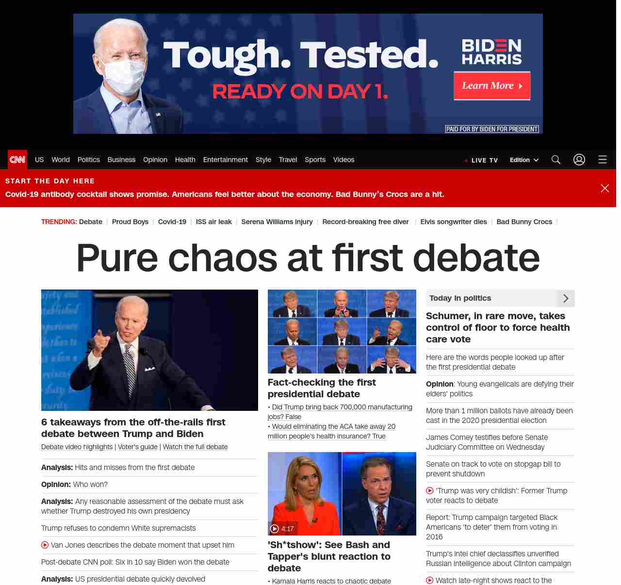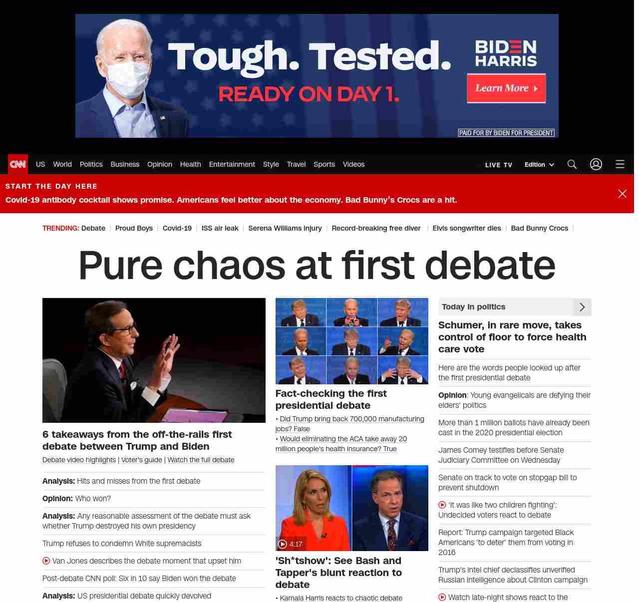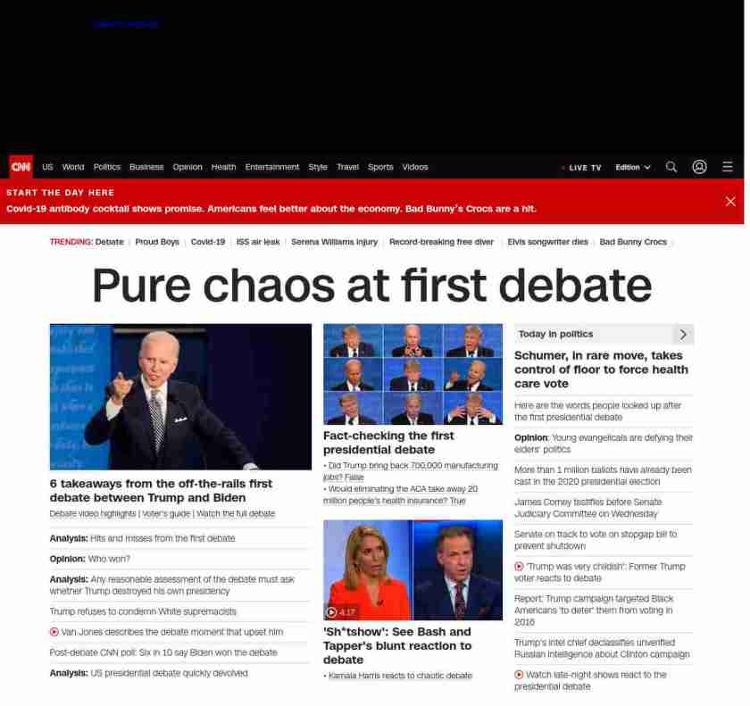 || banner-text–maximized banner-text-size–char-29″> Pure chaos at first debate ||”},”chartbeat”:{“sections”:””},”branding_content_page”:”presidential-debate”,”branding_content_zone”:[“default”],”branding_content_container”:[“default”,”cnn-money-markets”,”space-and-science”,”champions-for-change”,”cnn-heroes-hp”],”branding_content_card”:[“”]} , edition: “domestic” , sourceId: ”