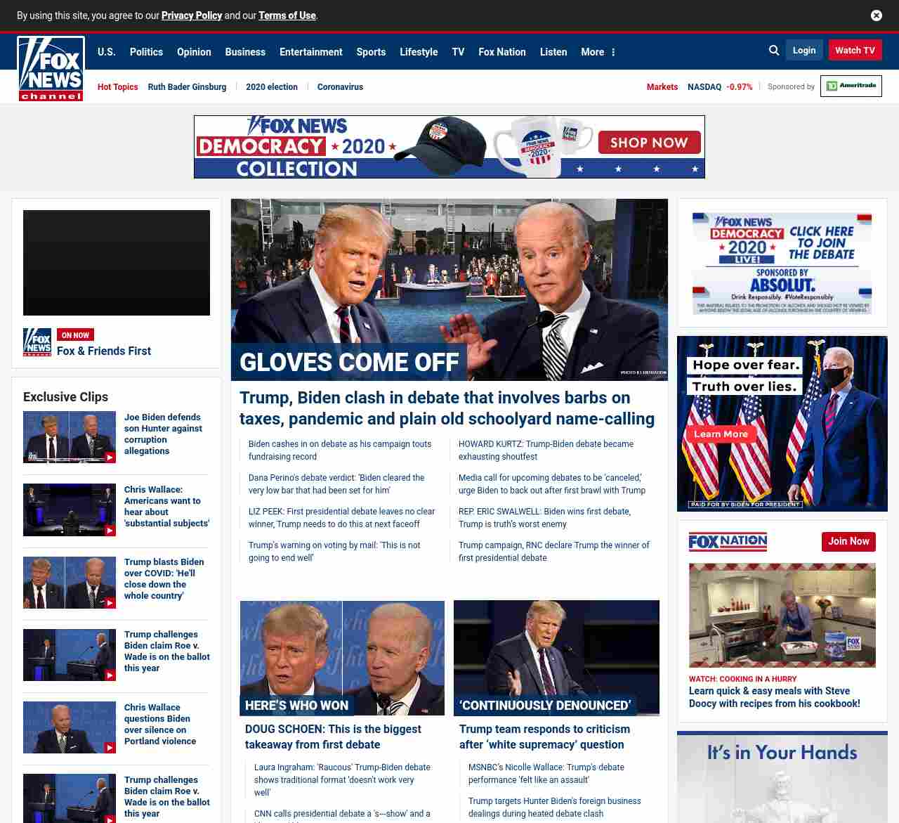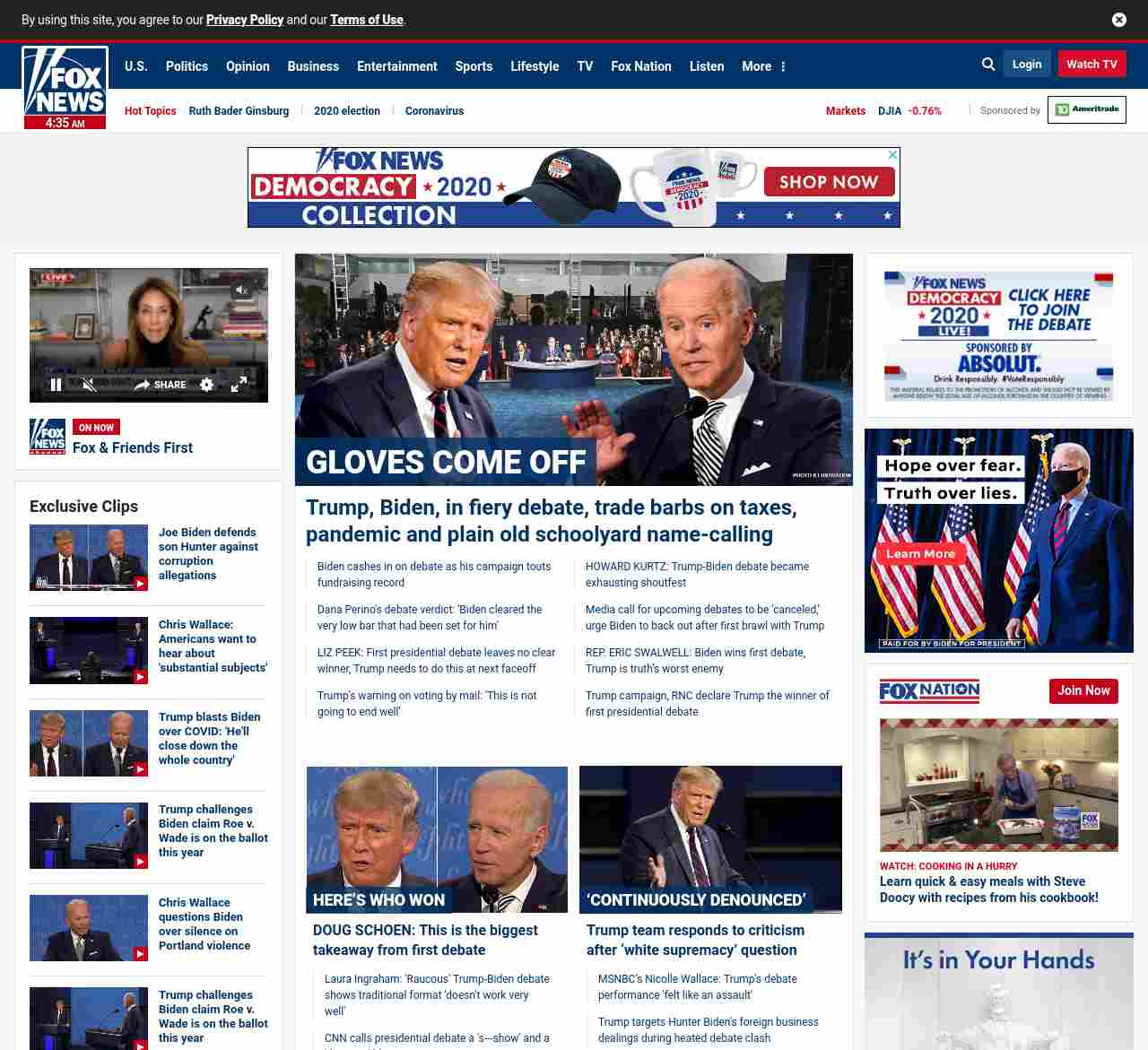 FN: [[GLOVES COME OFF]] Trump, Biden clash in debate that involves barbs on taxes, pandemic and plain old schoolyard name-calling</a ((lubuntu at wor3))