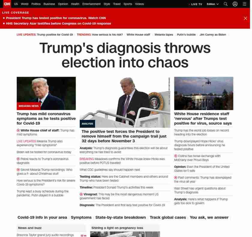 CNN1: FOXVCNN=|Trump’s diagnosis throws election into chaos| ((lubuntu at wor3)) || banner-text–natural”> Trump’s diagnosis throws election into chaos ||Trump’s diagnosis throws election into chaos Share this: Share on X (Opens in new window) X Share on Facebook (Opens in new window) Facebook Like Loading... Related