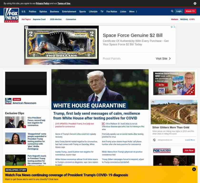 =”https://www.foxnews.com/politics/president-trump-confirms-he-first-lady-melania-trump-tested-positive-for-coronavirus“>Trump, first lady send messages of calm, resilience from White House after testing positive for COVID