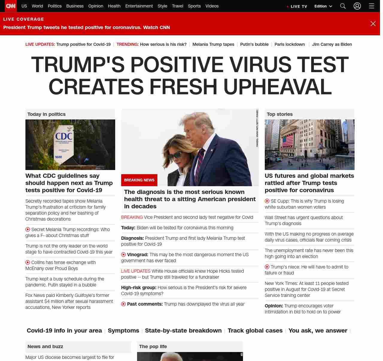 CNN1: FOXVCNN=|TRUMP’S POSITIVE VIRUS TEST CREATES FRESH UPHEAVAL| ((lubuntu at wor3))