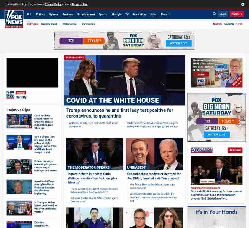 CNN1: FOXVCNN=|Trump and first lady test positive for Covid-19| ((lubuntu at wor3))