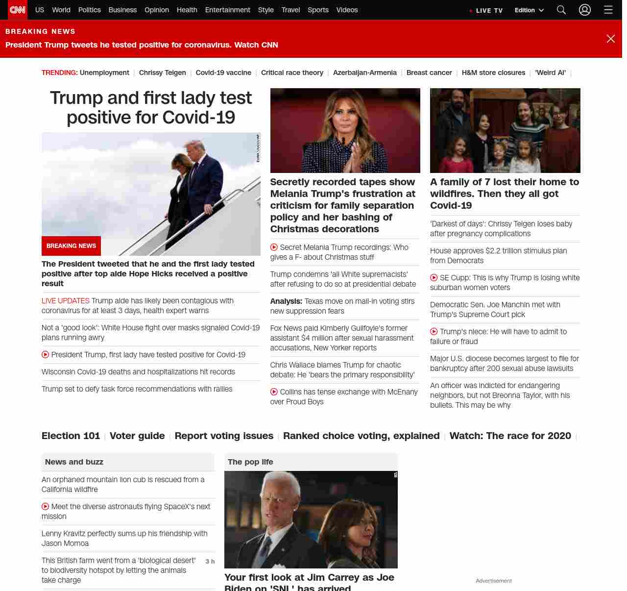 CNN1: FOXVCNN=|Trump and first lady test positive for Covid-19| ((lubuntu at wor3))