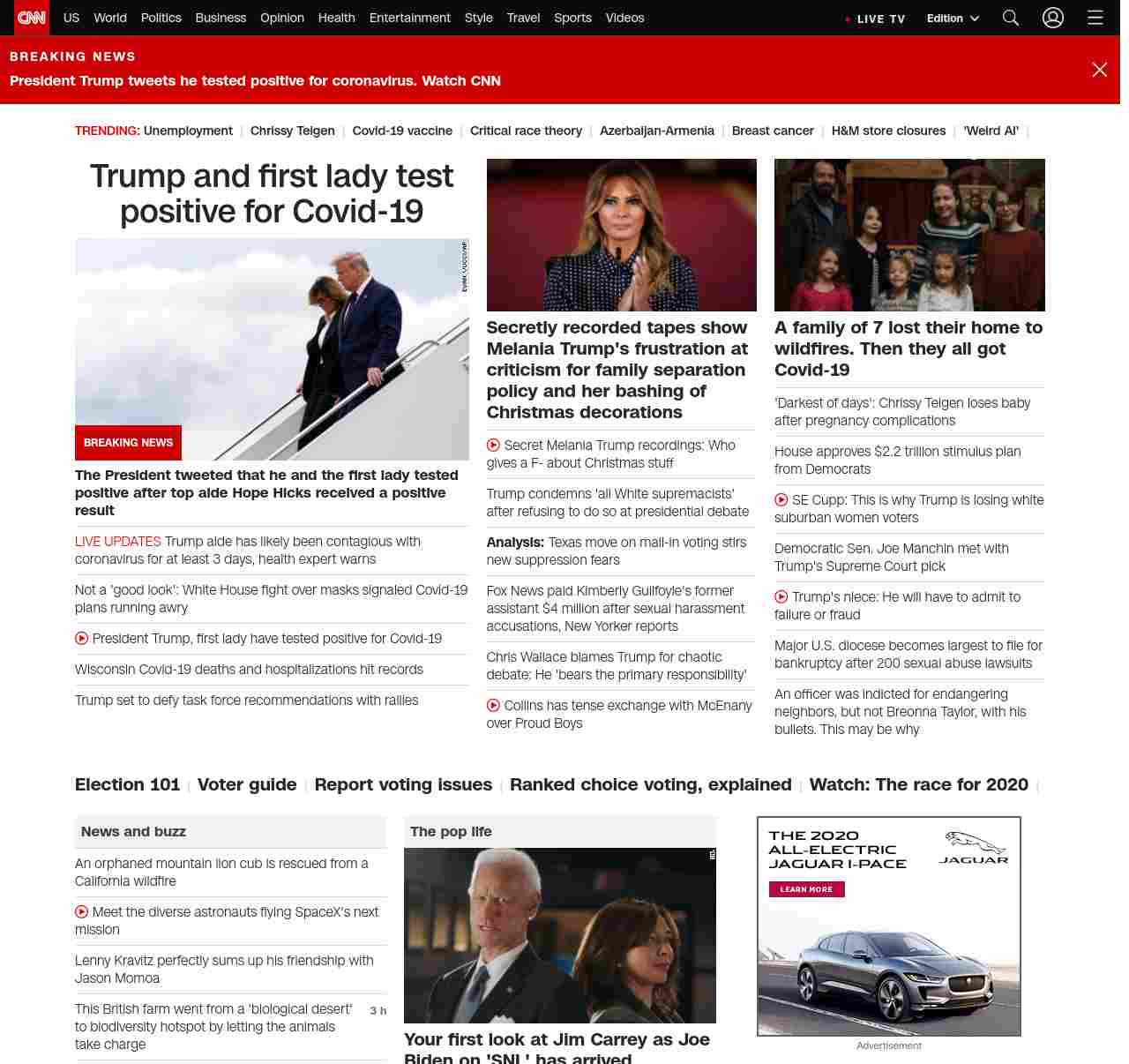 CNN2: subjectpartBANNER=|=”banner-text screaming-banner-text banner-text-size–char-47″ data-analytics=”_list-hierarchical-xs_article_”>Trump and first lady test positive for Covid-19| ((lubuntu at wor3)))