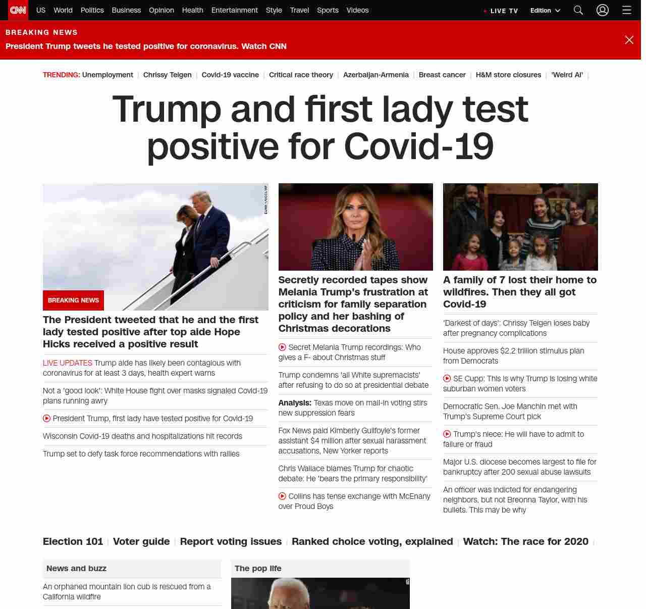 CNN2: subjectpartBANNER=|=”banner-text banner-text–natural”>Trump and first lady test positive for Covid-19| ((lubuntu at wor3)))