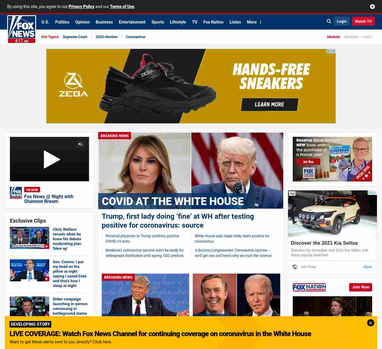 FN: [[COVID AT THE WHITE HOUSE]] Trump announces he and first lady test positive for coronavirus, to quarantine</a ((lubuntu at wor3))
