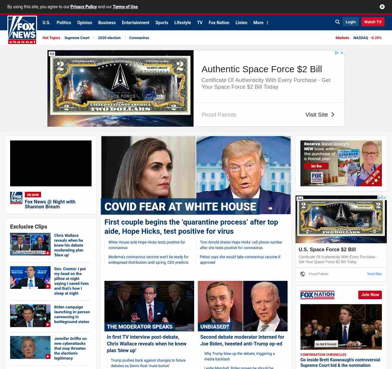 FN: [[COVID FEAR AT WHITE HOUSE]] First couple begins the ‘quarantine process’ after top aide, Hope Hicks, test positive for virus</a ((lubuntu at wor3))