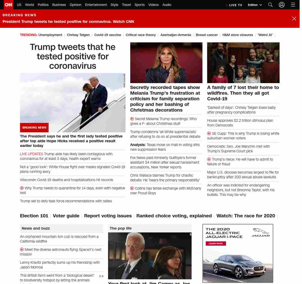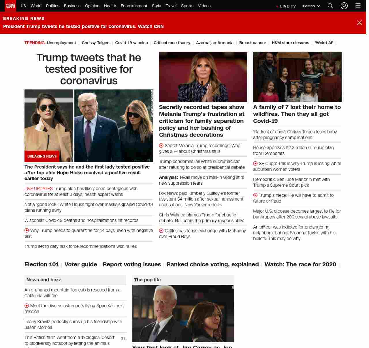 CNN1: FOXVCNN=|Trump tweets that he tested positive for coronavirus| ((lubuntu at wor3))