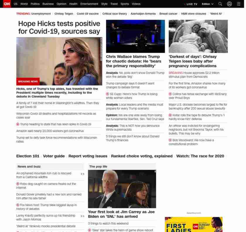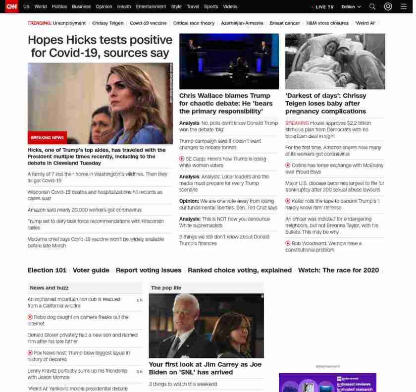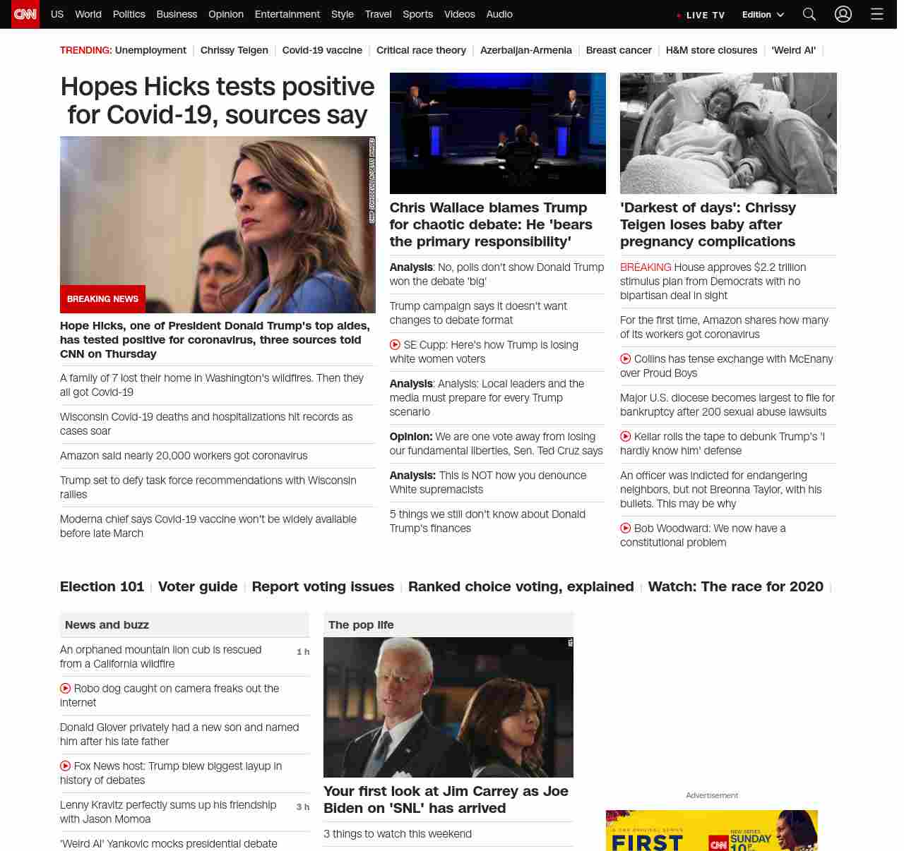 CNN1: FOXVCNN=|Hopes Hicks tests positive for Covid-19, sources say| ((lubuntu at wor3))