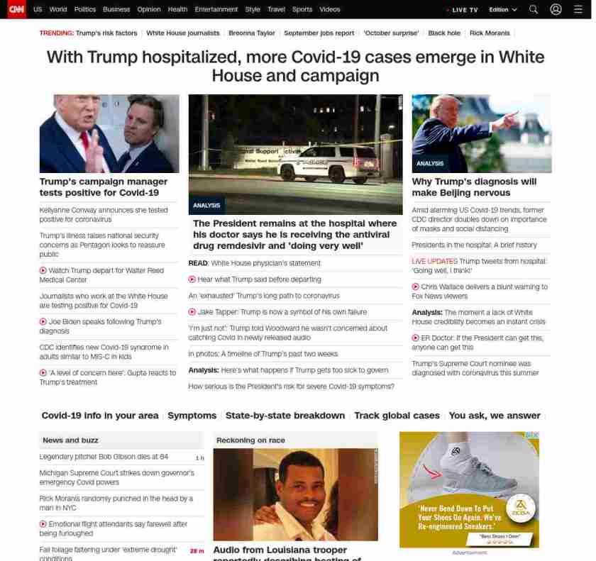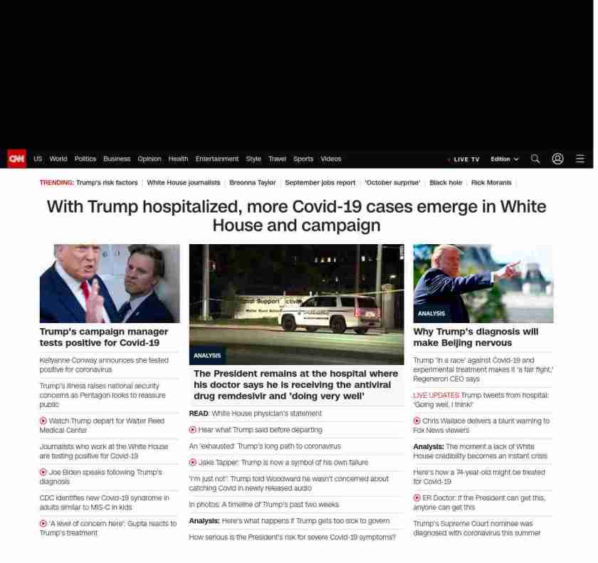 || banner-text–maximized banner-text-size–char-47″> With Trump hospitalized, more Covid-19 cases emerge in White House and campaign ||”},”chartbeat”:{“sections”:””},”branding_content_page”:”default”,”branding_content_zone”:[“default”],”branding_content_container”:[“default”,”cnn-money-markets”,”space-and-science”,”champions-for-change”],”branding_content_card”:[“”]} , edition: “domestic” , sourceId: ”