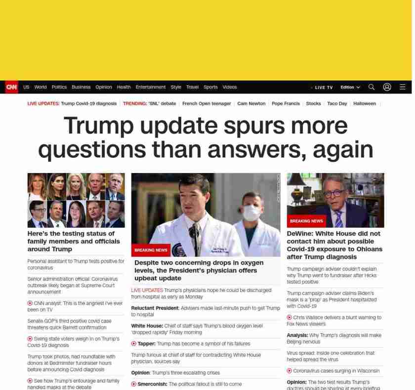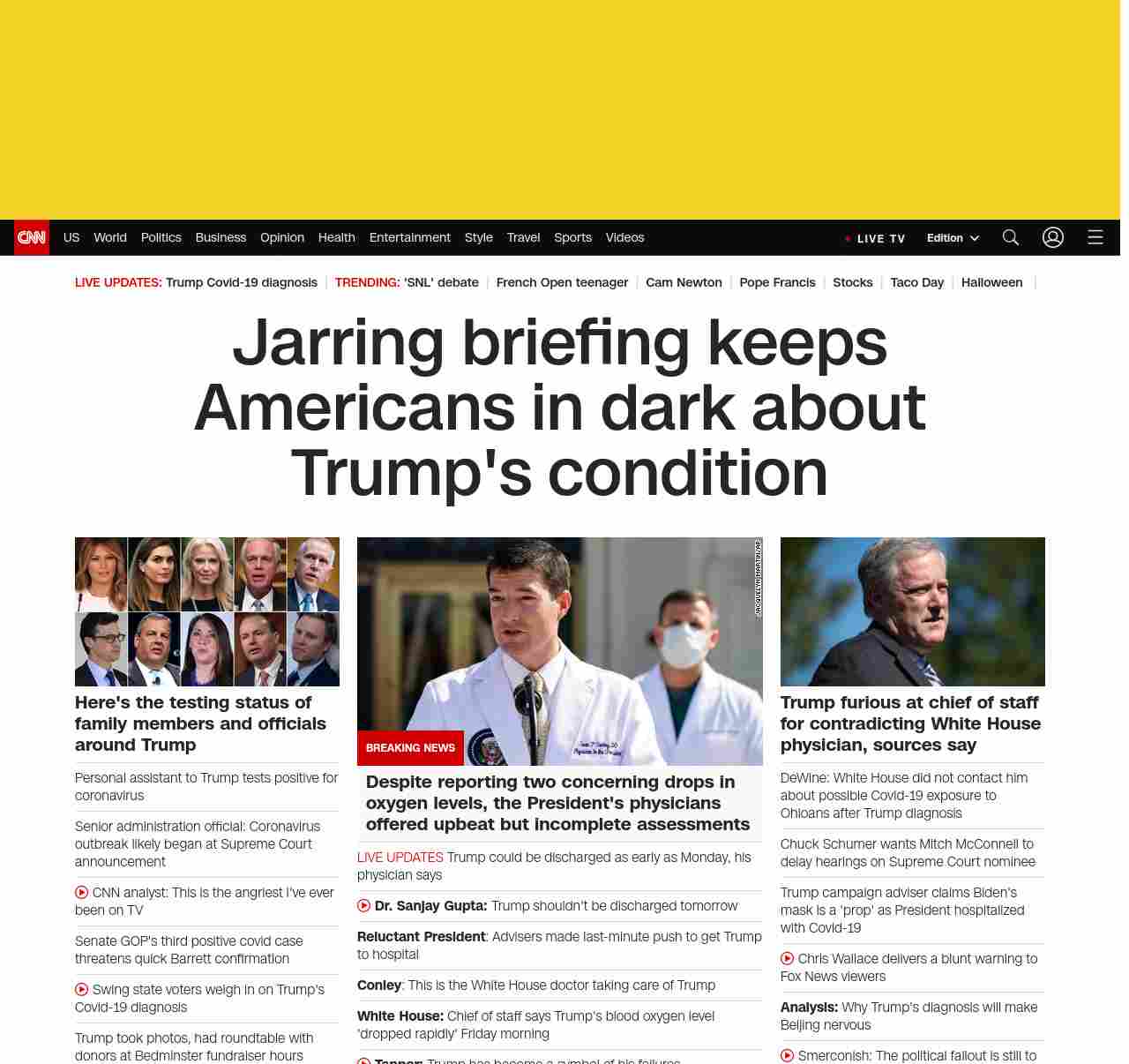 CNN1: FOXVCNN=|Trump’s doctors give another jarring update on his health| ((lubuntu at wor3))