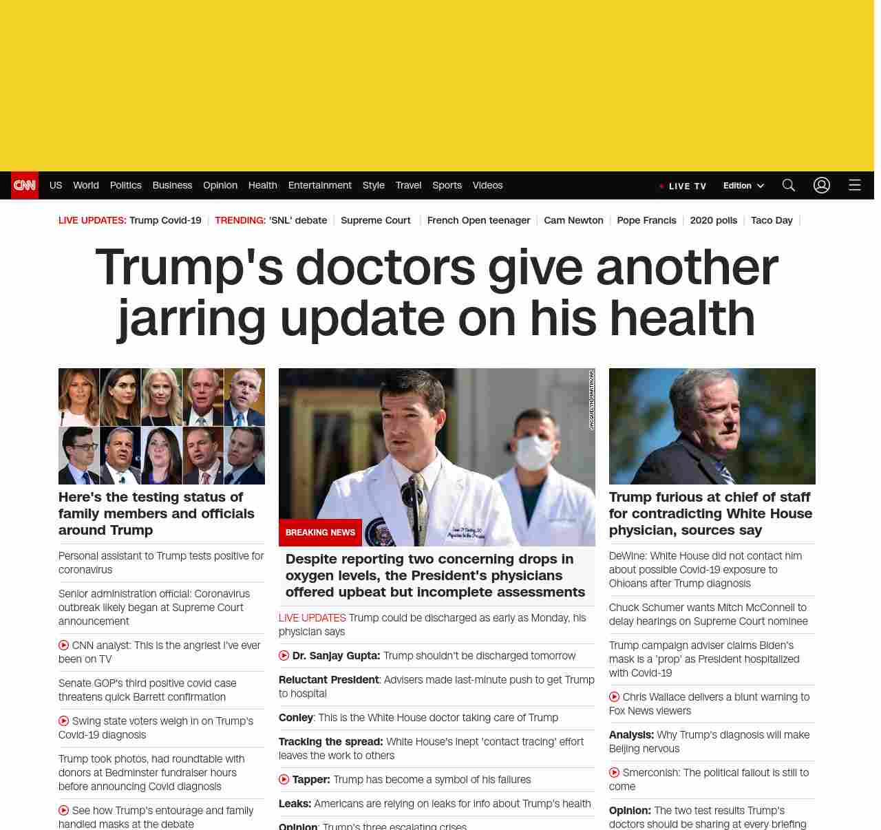 || banner-text–natural”> Trump’s doctors give another jarring update on his health ||”},”chartbeat”:{“sections”:””},”branding_content_page”:”default”,”branding_content_zone”:[“default”],”branding_content_container”:[“default”,”cnn-money-markets”,”space-and-science”,”champions-for-change”],”branding_content_card”:[“”]} , edition: “domestic” , sourceId: ”