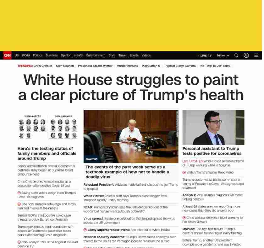 CNN2: subjectpartBANNER=|=”banner-text banner-text–natural”>White House struggles to paint a clear picture of Trump’s health| ((lubuntu at wor3)))