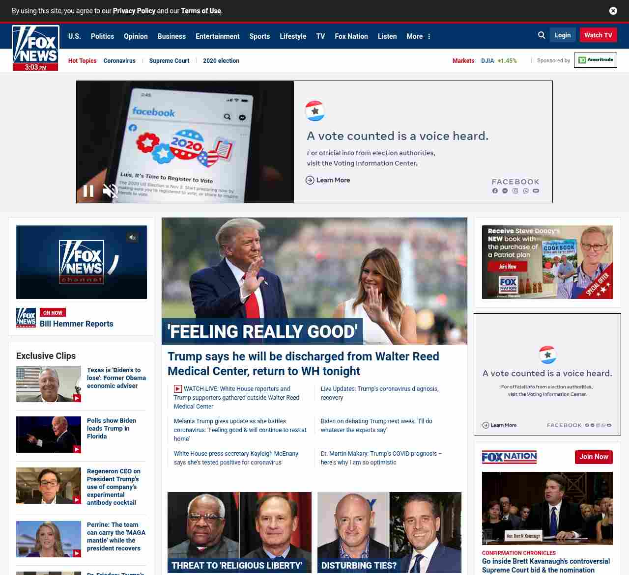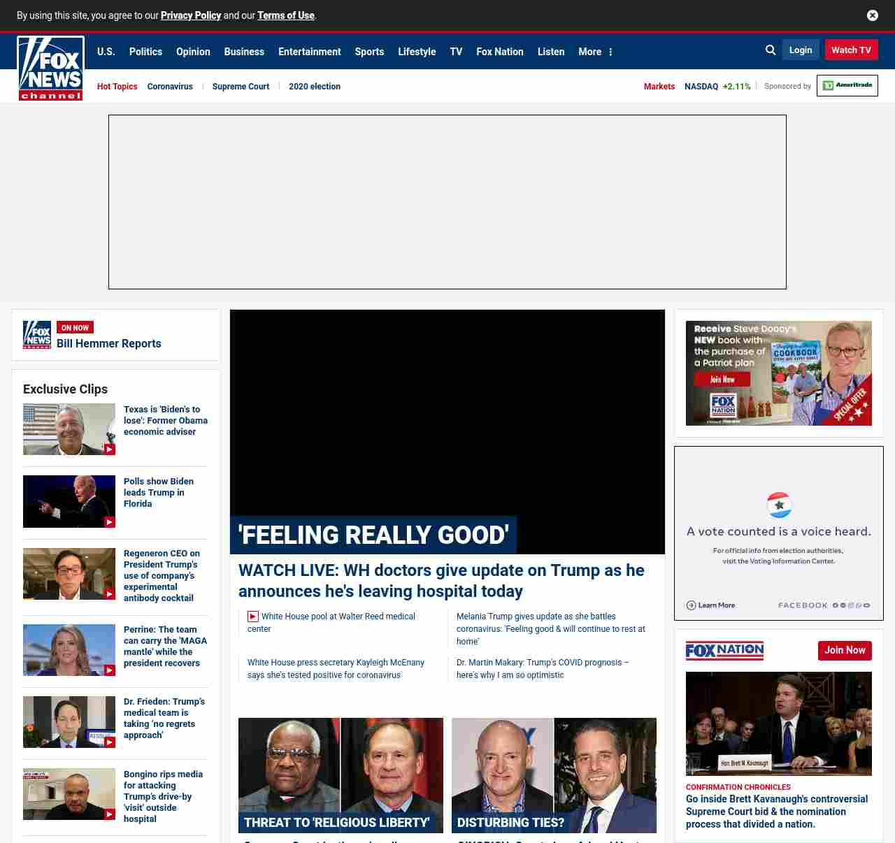 =”https://www.foxnews.com/politics/trump-tweets-that-he-will-leave-walter-reed-medical-center-tonight-says-he-is-feeling-really-good“>Trump says he will be discharged from Walter Reed Medical Center, return to WH tonight
