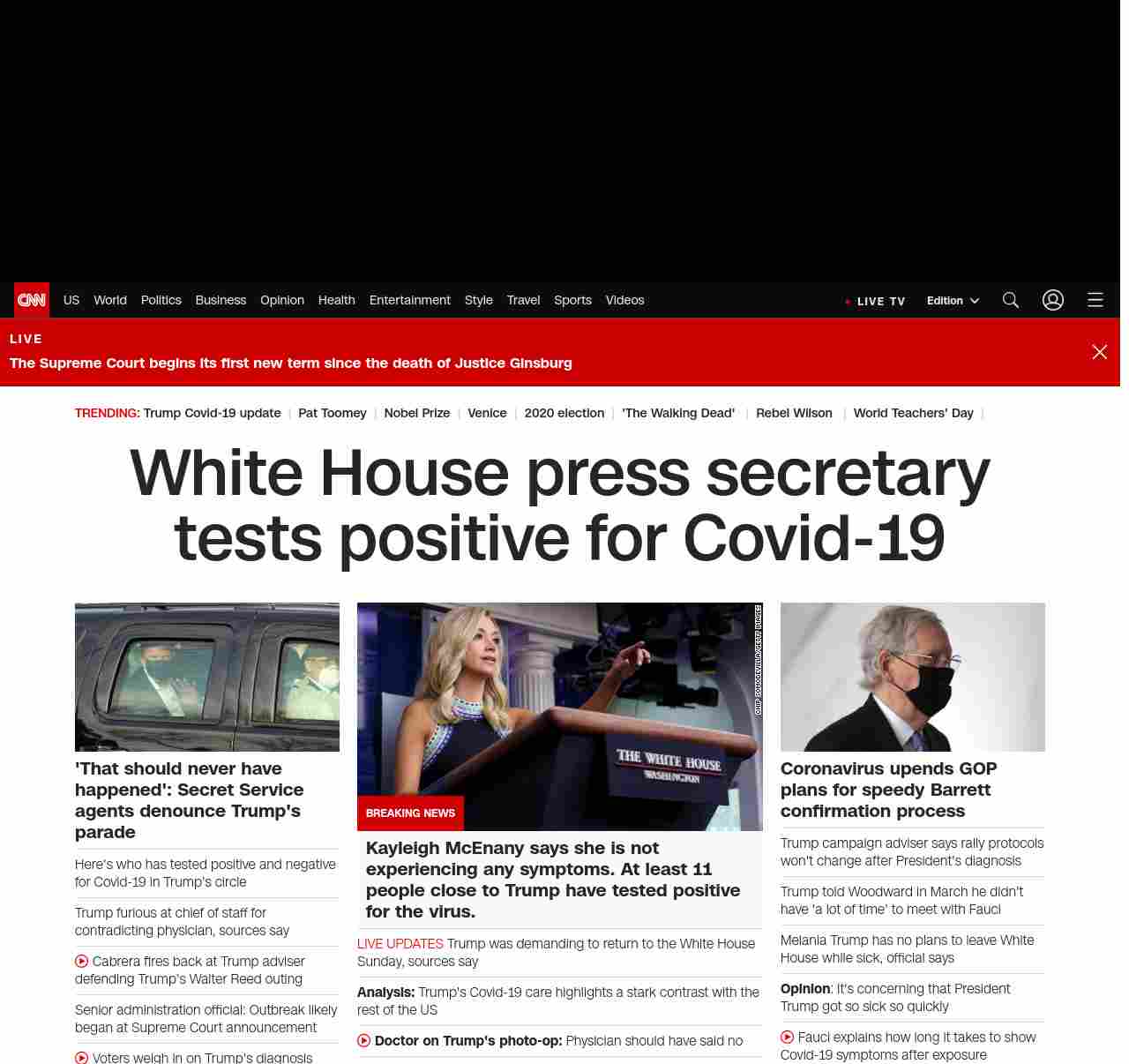 || banner-text–natural”> White House press secretary tests positive for Covid-19 ||”},”chartbeat”:{“sections”:””},”branding_content_page”:”default”,”branding_content_zone”:[“default”],”branding_content_container”:[“default”,”cnn-money-markets”,”space-and-science”,”champions-for-change”],”branding_content_card”:[“”]} , edition: “domestic” , sourceId: ”