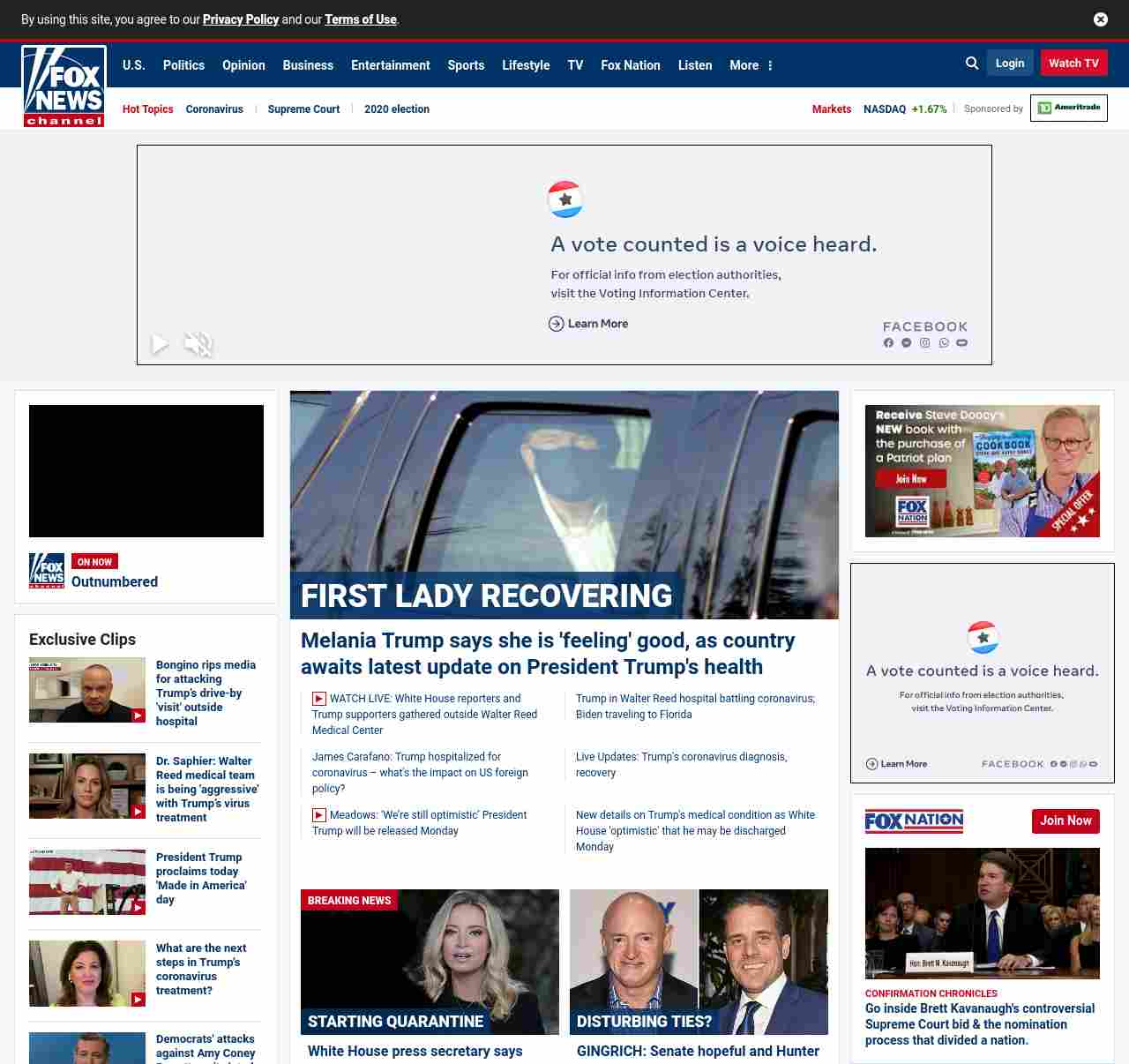 =”https://www.foxnews.com/politics/melania-trump-says-she-is-feeling-good-continuing-to-rest-amid-coronavirus“>Melania Trump says she is ‘feeling’ good, as country awaits latest update on President Trump’s health