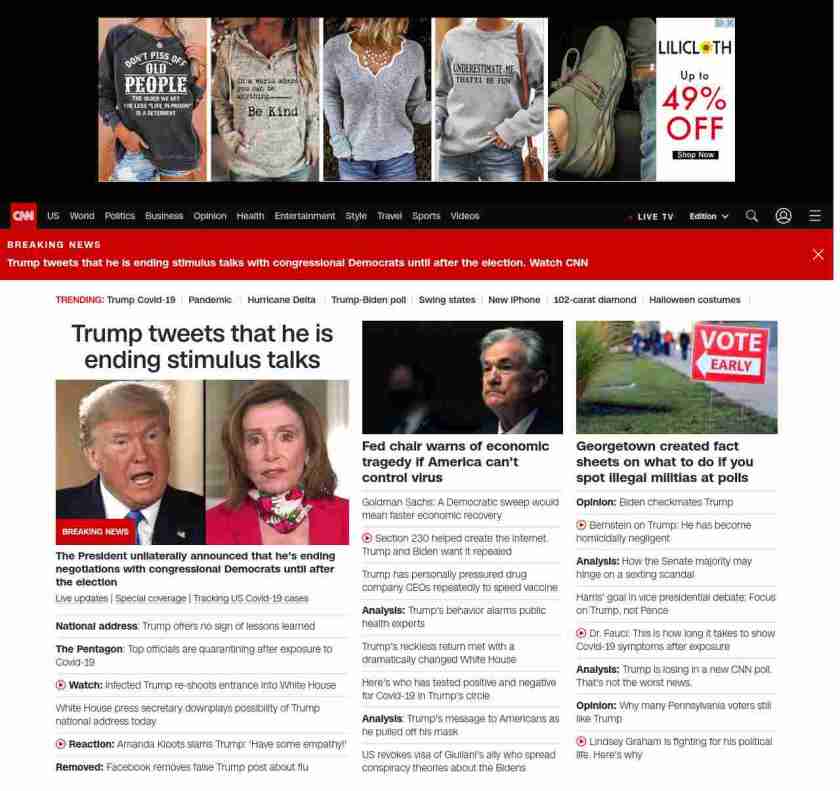 CNN2: subjectpartBANNER=|=”banner-text screaming-banner-text banner-text-size–char-47″ data-analytics=”_list-hierarchical-xs_hyperlink_”>Trump tweets that he is ending stimulus talks| ((lubuntu at wor3)))