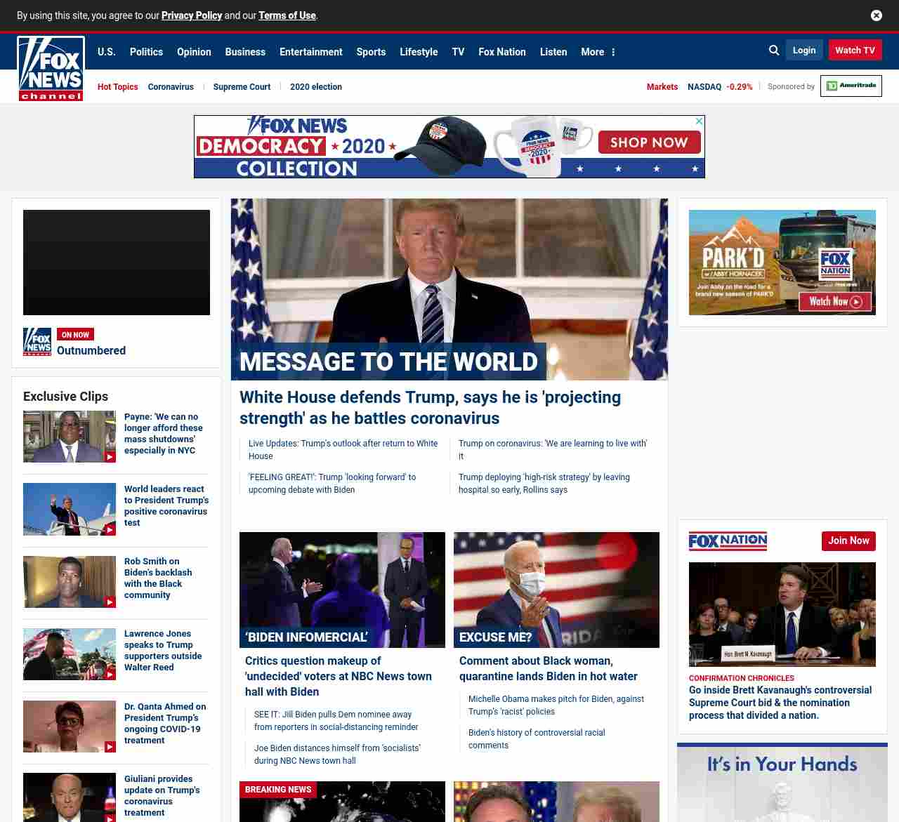 FN: [[MESSAGE TO THE WORLD]] White House defends Trump, says he is ' projecting strength' as he battles coronavirus</a ((lubuntu at wor3))