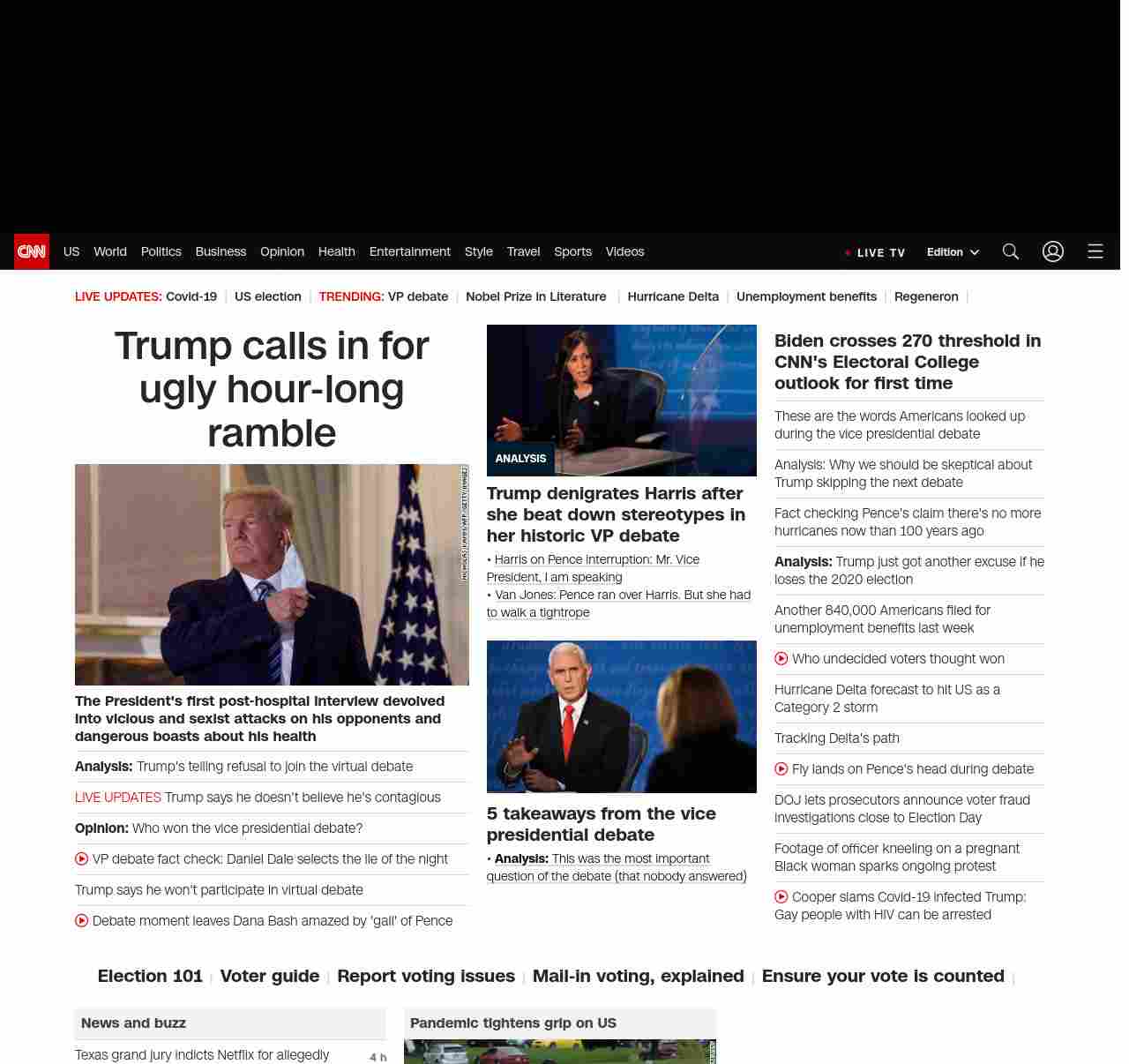 || screaming-banner-text banner-text-size–char-47″ data-analytics=”_list-hierarchical-xs_article_”> Trump’s telling refusal to join the virtual debate ||=”banner-text screaming-banner-text banner-text-size–char-32″ data-analytics=”_list-hierarchical-xs_article_”>Trump calls in for rambling interview