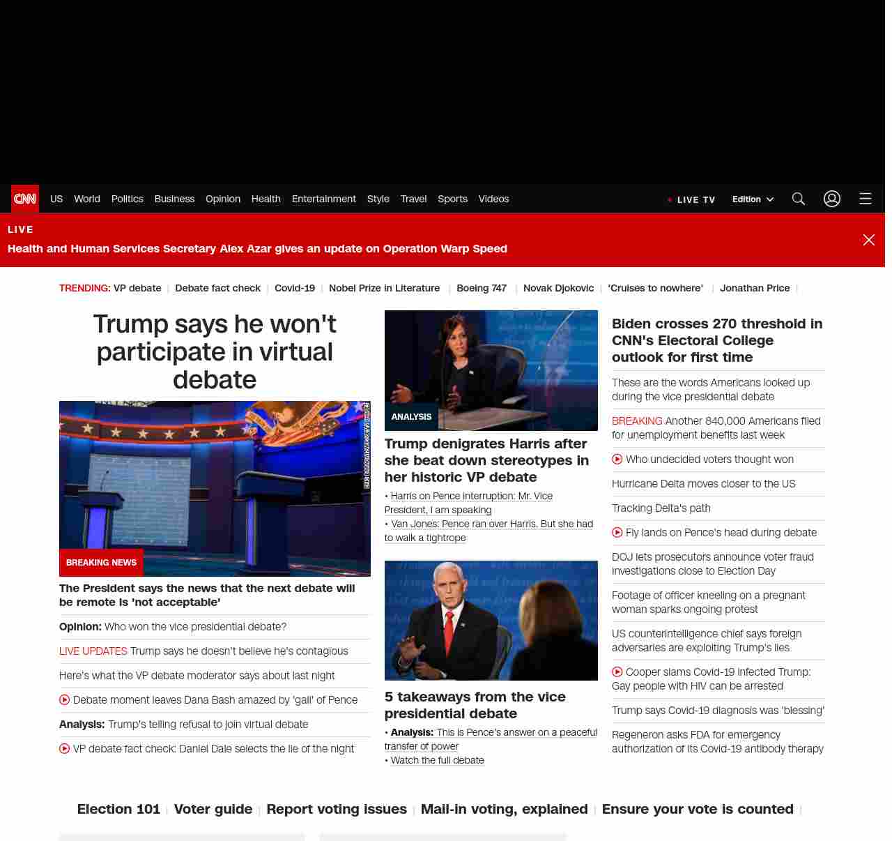 || screaming-banner-text banner-text-size–char-47″ data-analytics=”_list-hierarchical-xs_article_”> Trump says he won’t participate in virtual debate ||”},”chartbeat”:{“sections”:””},”branding_content_page”:”default”,”branding_content_zone”:[“default”],”branding_content_container”:[“default”,”cnn-money-markets”,”space-and-science”,”champions-for-change”],”branding_content_card”:[“”]} , edition: “domestic” , sourceId: ”
