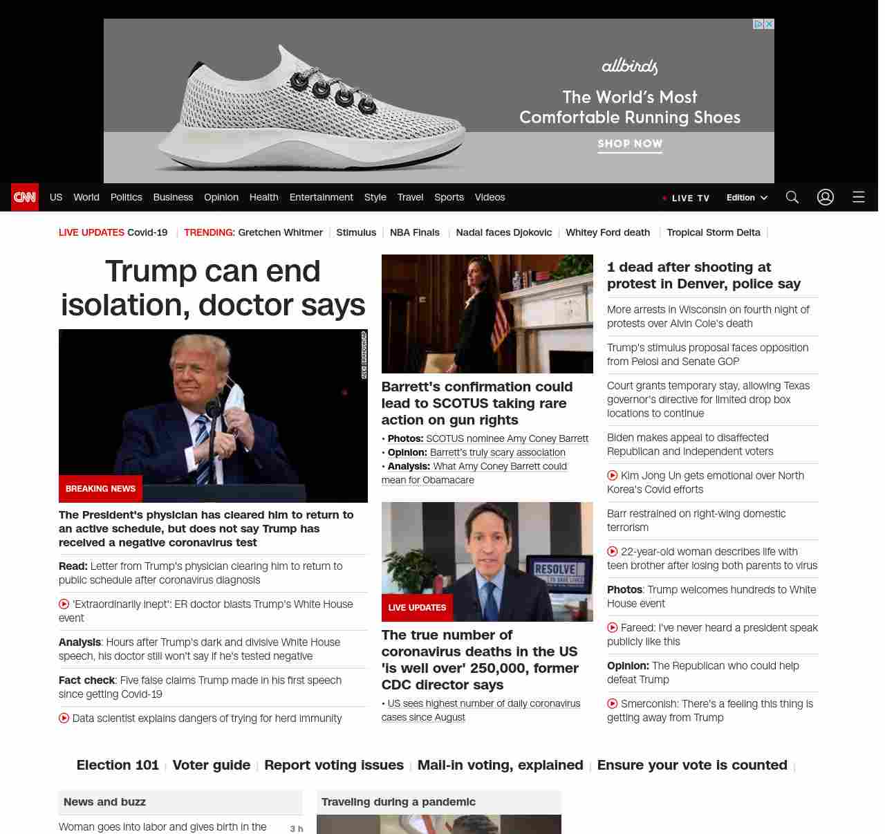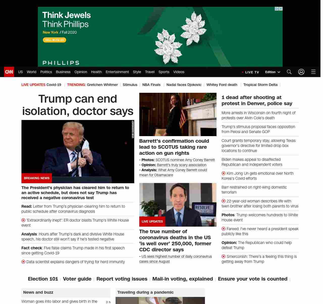 || screaming-banner-text banner-text-size–char-38″ data-analytics=”_list-hierarchical-xs_article_”> Trump can end isolation, doctor says ||=”banner-text screaming-banner-text banner-text-size–char-47″ data-analytics=”_list-hierarchical-xs_article_”>Offered a chance to pivot, Trump chooses denial and recklessness