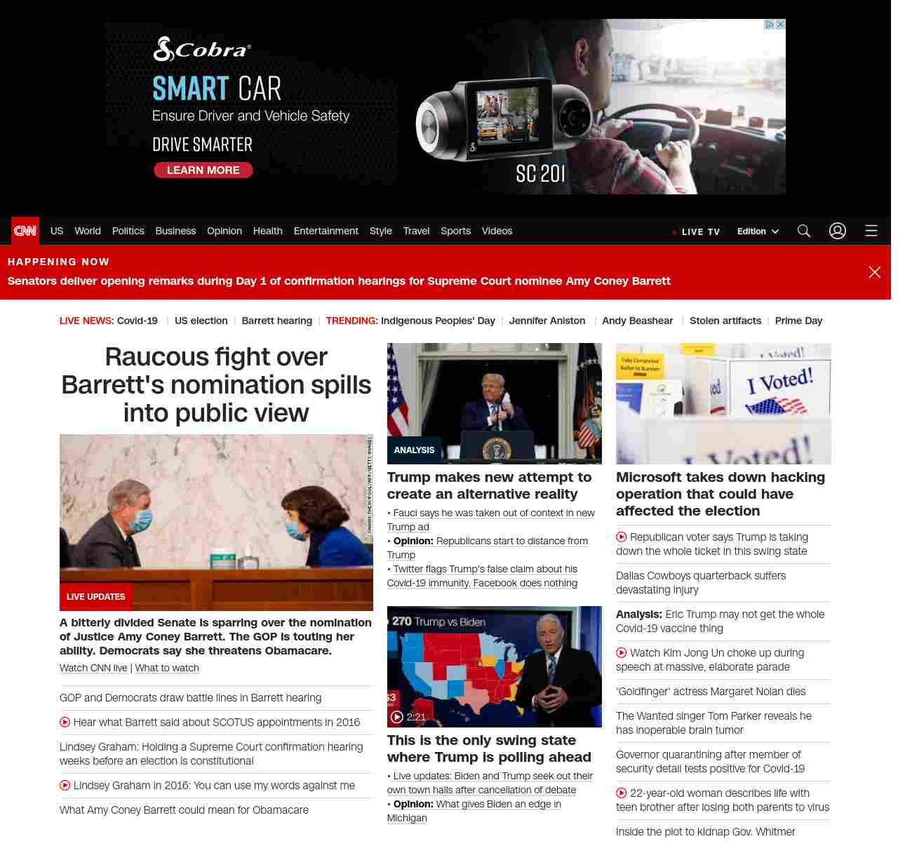 || screaming-banner-text banner-text-size–char-47″ data-analytics=”_list-hierarchical-xs_hyperlink_”> GOP touts Barrett’s ability. Dems say she threatens Obamacare ||A bitterly divided Senate launches the confirmation hearing of Amy Coney Barrett, Trump’s choice to fill the seat of the late liberal icon Ruth Bader Ginsburg