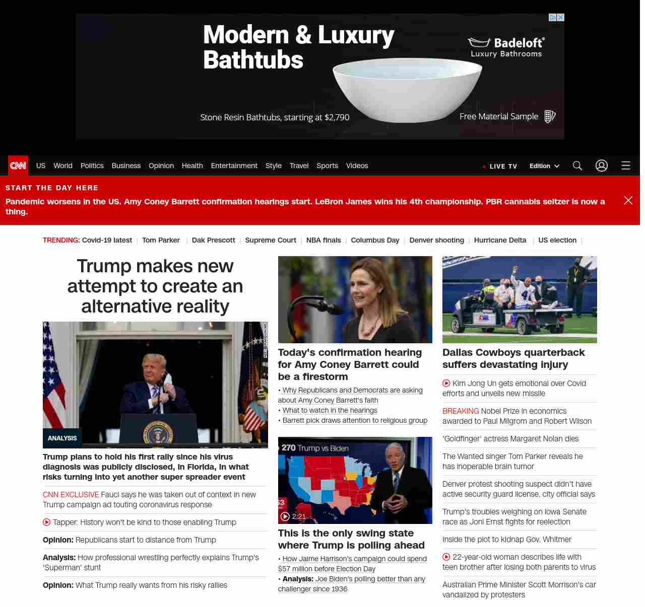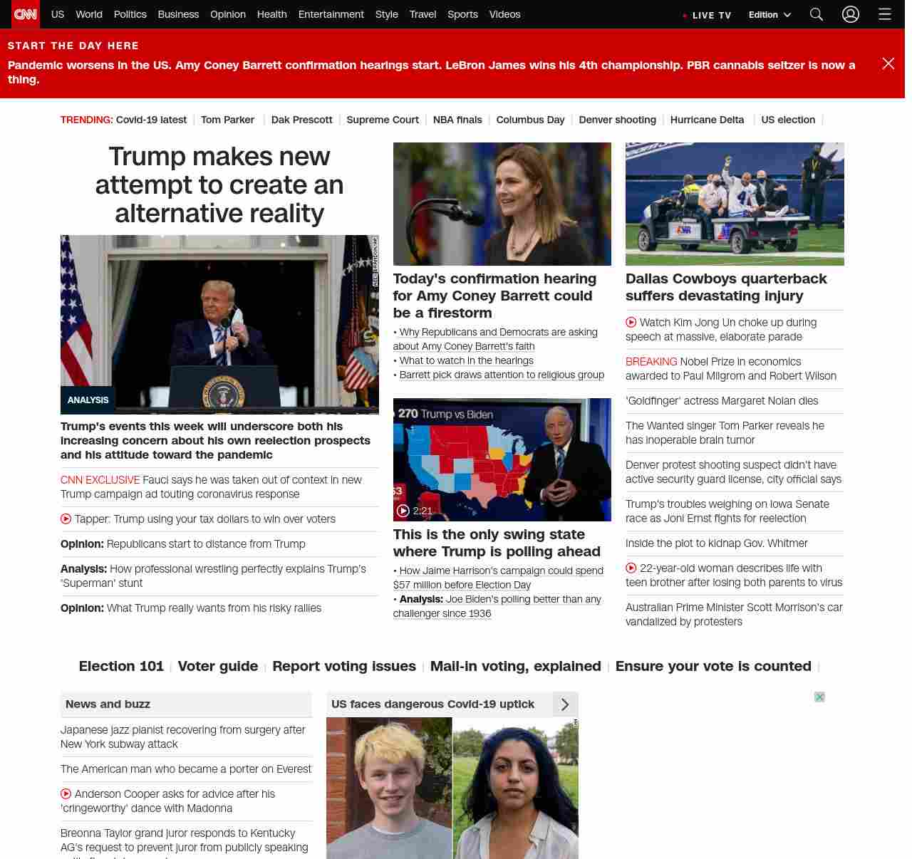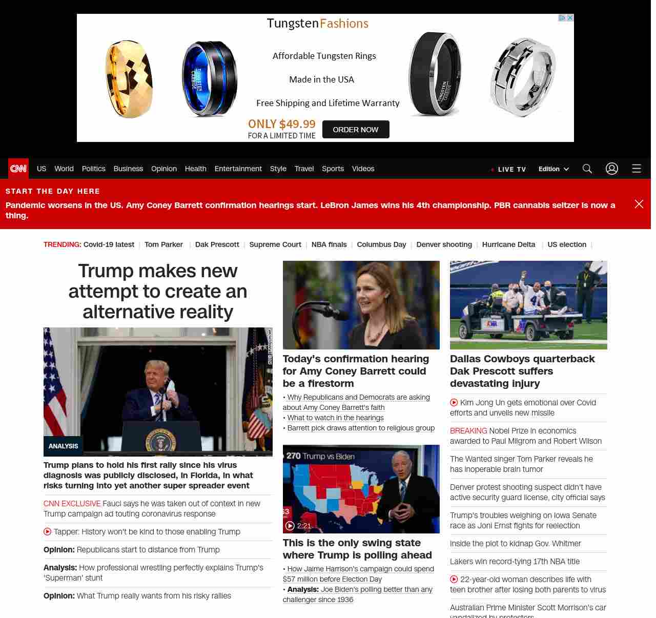 || screaming-banner-text banner-text-size–char-47″ data-analytics=”_list-hierarchical-xs_article_”> Trump makes new attempt to create an alternative reality ||Trump plans to hold his first rally since his virus diagnosis was publicly disclosed, in Florida, in what risks turning into yet another super spreader event