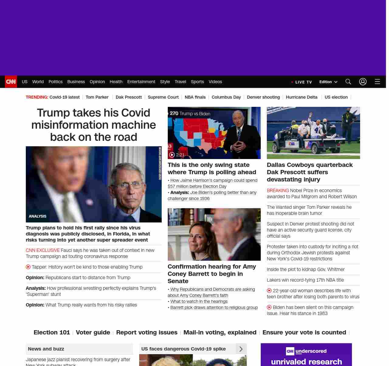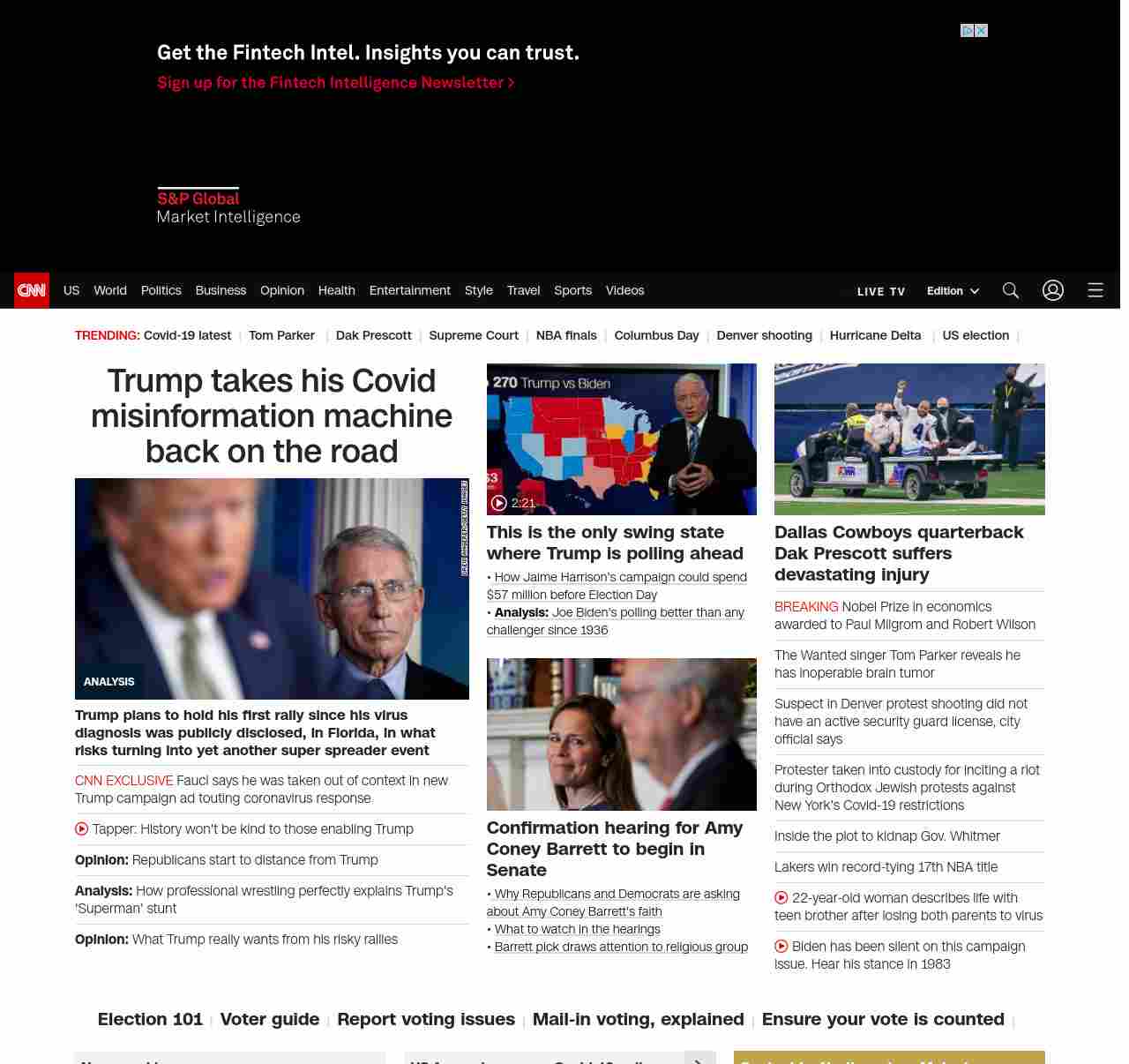 || screaming-banner-text banner-text-size–char-47″ data-analytics=”_list-hierarchical-xs_article_”> Trump takes his Covid misinformation machine back on the road ||Trump plans to hold his first rally since his virus diagnosis was publicly disclosed, in Florida, in what risks turning into yet another super spreader event