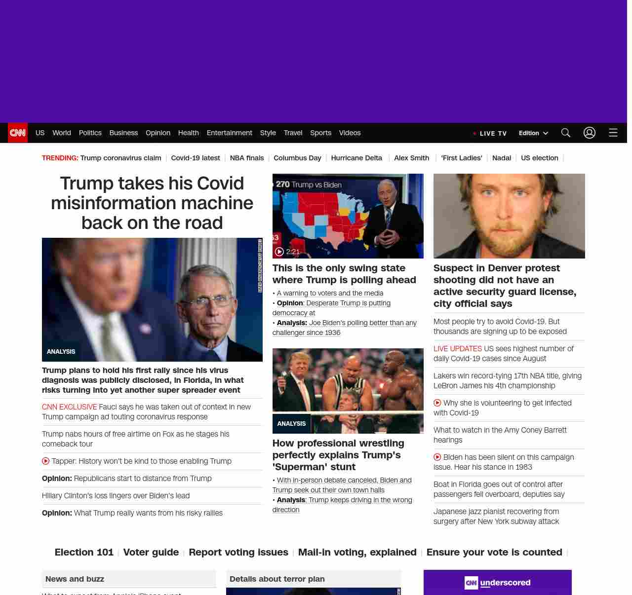 CNN2: subjectpartBANNER=|=”banner-text screaming-banner-text banner-text-size–char-47″ data-analytics=”_list-hierarchical-xs_article_”>Trump takes his Covid misinformation machine back on the road| ((lubuntu at wor3)))