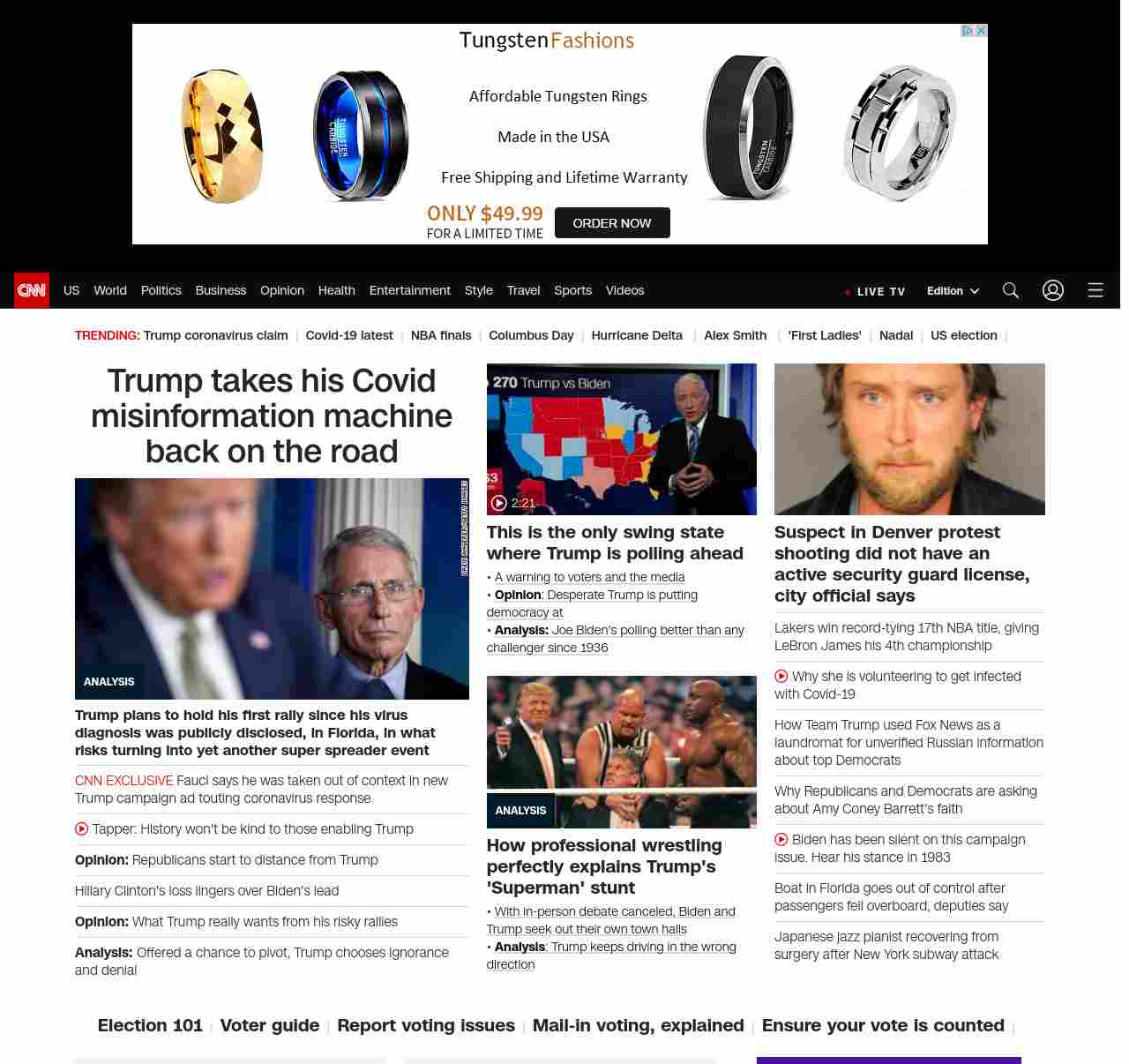 || screaming-banner-text banner-text-size–char-47″ data-analytics=”_list-hierarchical-xs_article_”> Trump takes his Covid misinformation machine back on the road ||Trump plans to hold his first rally since his virus diagnosis was publicly disclosed, in Florida, in what risks turning into yet another super spreader event