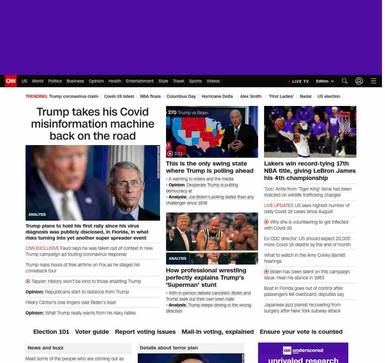 CNN2: subjectpartBANNER=|=”banner-text screaming-banner-text banner-text-size–char-47″ data-analytics=”_list-hierarchical-xs_article_”>Trump takes his Covid misinformation machine back on the road| ((lubuntu at wor3)))