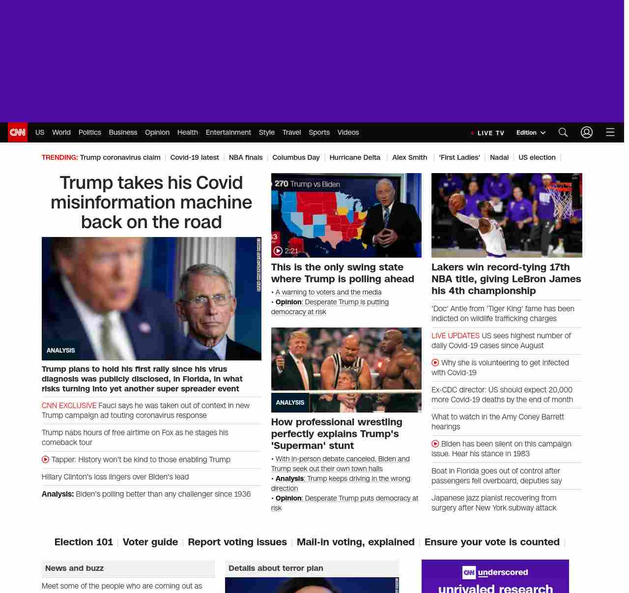CNN2: subjectpartBANNER=|=”banner-text screaming-banner-text banner-text-size–char-47″ data-analytics=”_list-hierarchical-xs_article_”>Trump takes his Covid misinformation machine back on the road| ((lubuntu at wor3)))