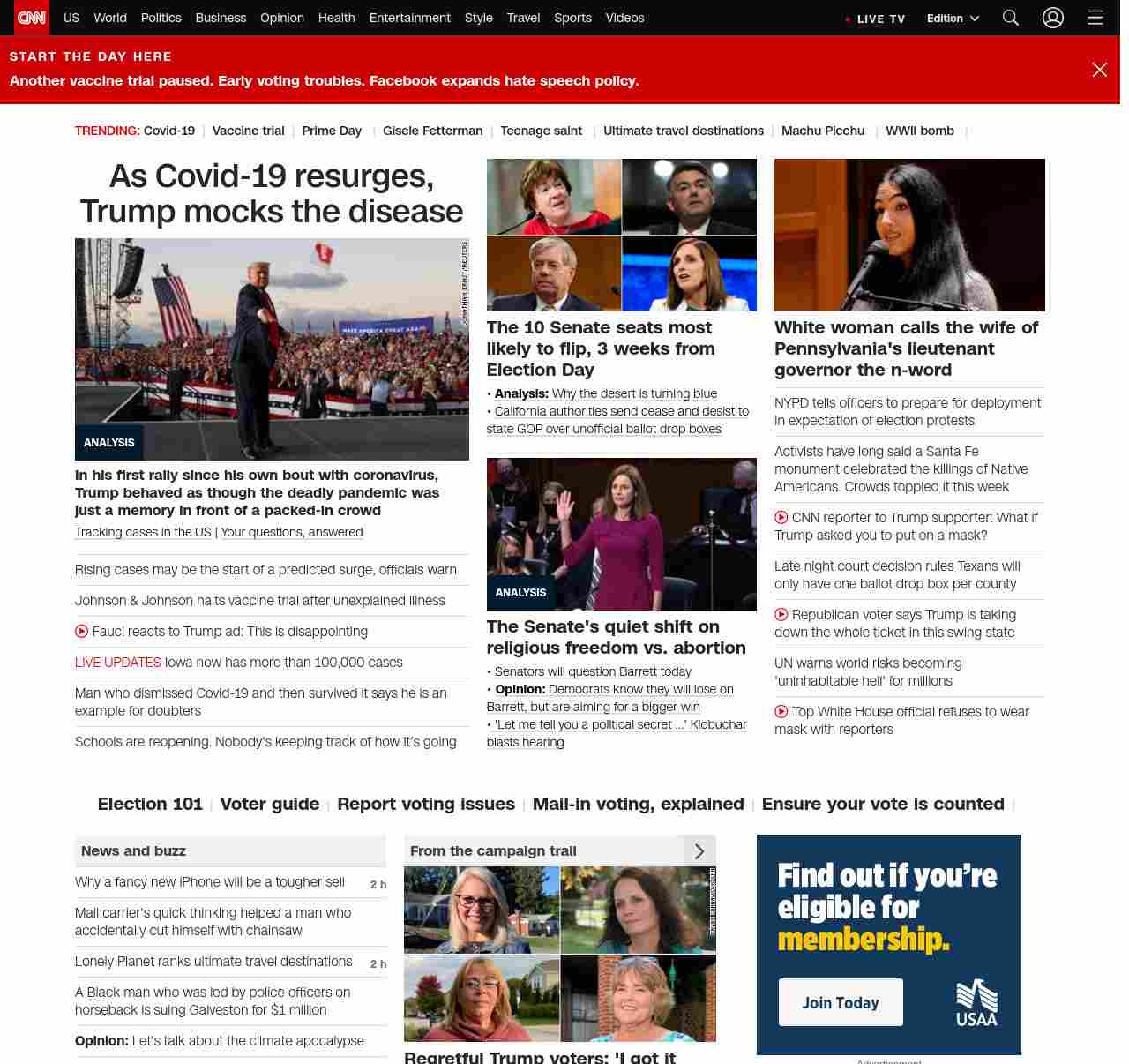 || screaming-banner-text banner-text-size–char-47″ data-analytics=”_list-hierarchical-xs_article_”> As Covid-19 resurges, Trump mocks the disease ||In his first rally since his own bout with coronavirus, Trump behaved as though the deadly pandemic was just a memory in front of a packed-in crowd
