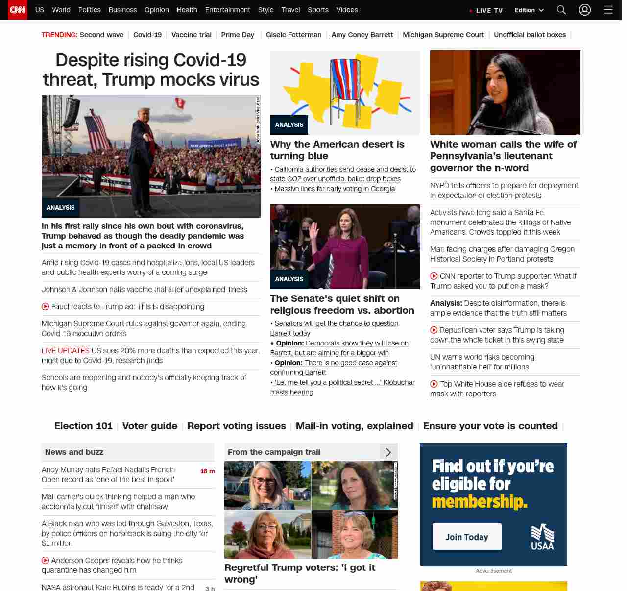 || screaming-banner-text banner-text-size–char-47″ data-analytics=”_list-hierarchical-xs_article_”> Despite rising Covid-19 threat, Trump mocks virus ||In his first rally since his own bout with coronavirus, Trump behaved as though the deadly pandemic was just a memory in front of a packed-in crowd
