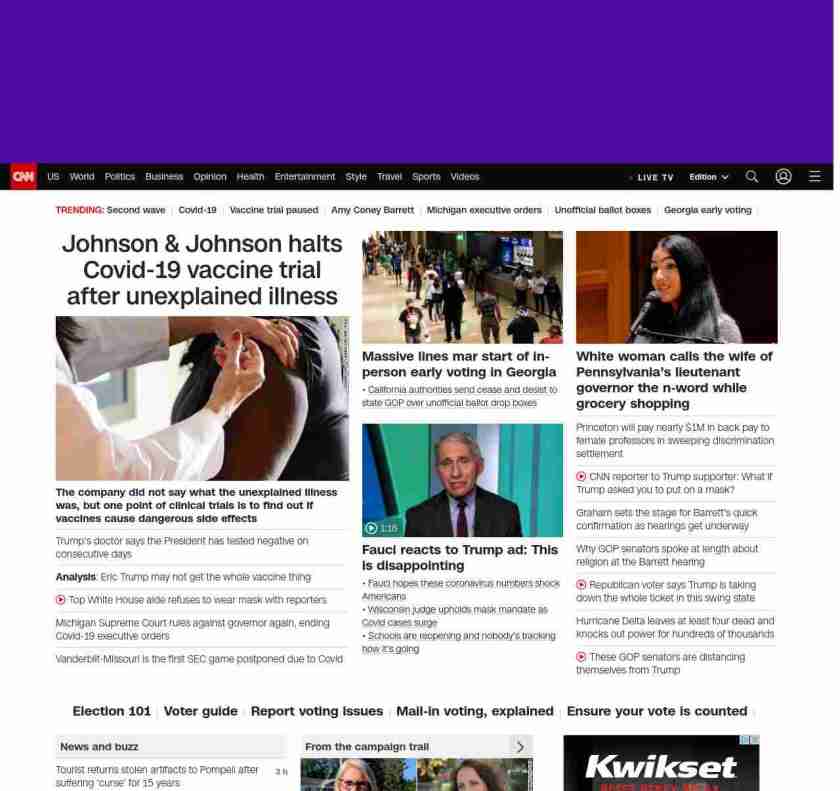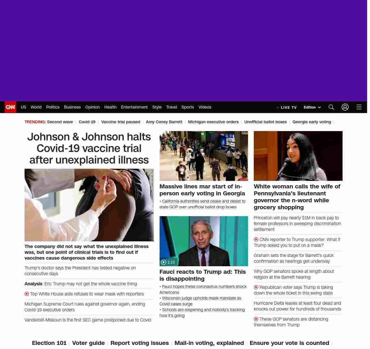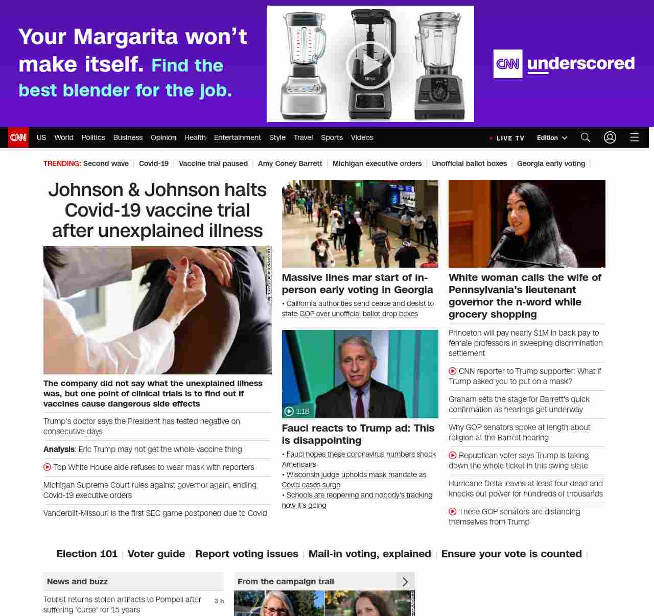 || screaming-banner-text banner-text-size–char-47″ data-analytics=”_list-hierarchical-xs_article_”> Johnson & Johnson halts Covid-19 vaccine trial after unexplained illness ||=”banner-text screaming-banner-text banner-text-size–char-47″ data-analytics=”_list-hierarchical-xs_article_”>Trump launches potential superspreader sprint to win reelection