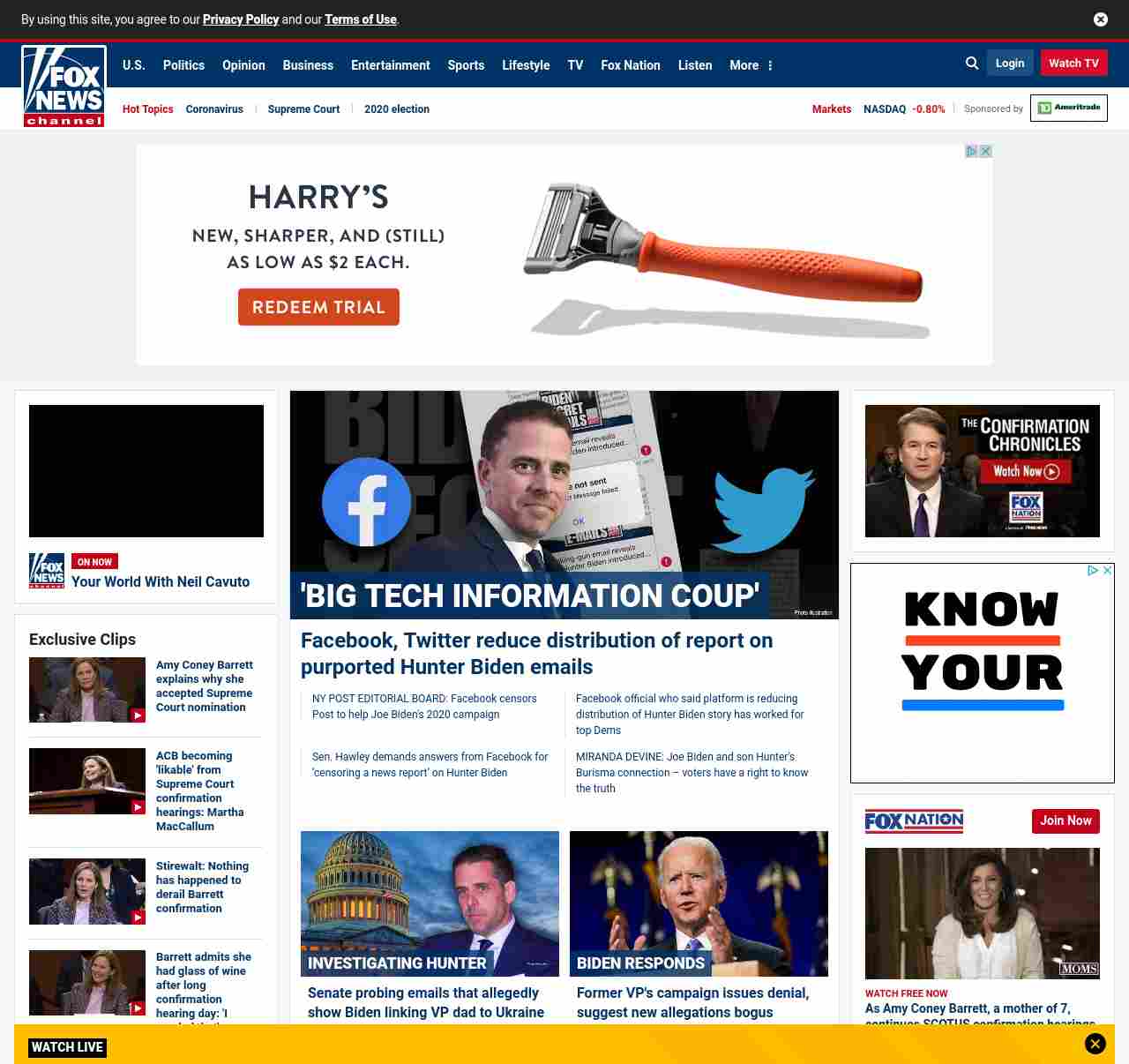 FN: [[' BIG TECH INFORMATION COUP' ]] Facebook, Twitter reduce distribution of report on purported Hunter Biden emails</a ((lubuntu at wor3))