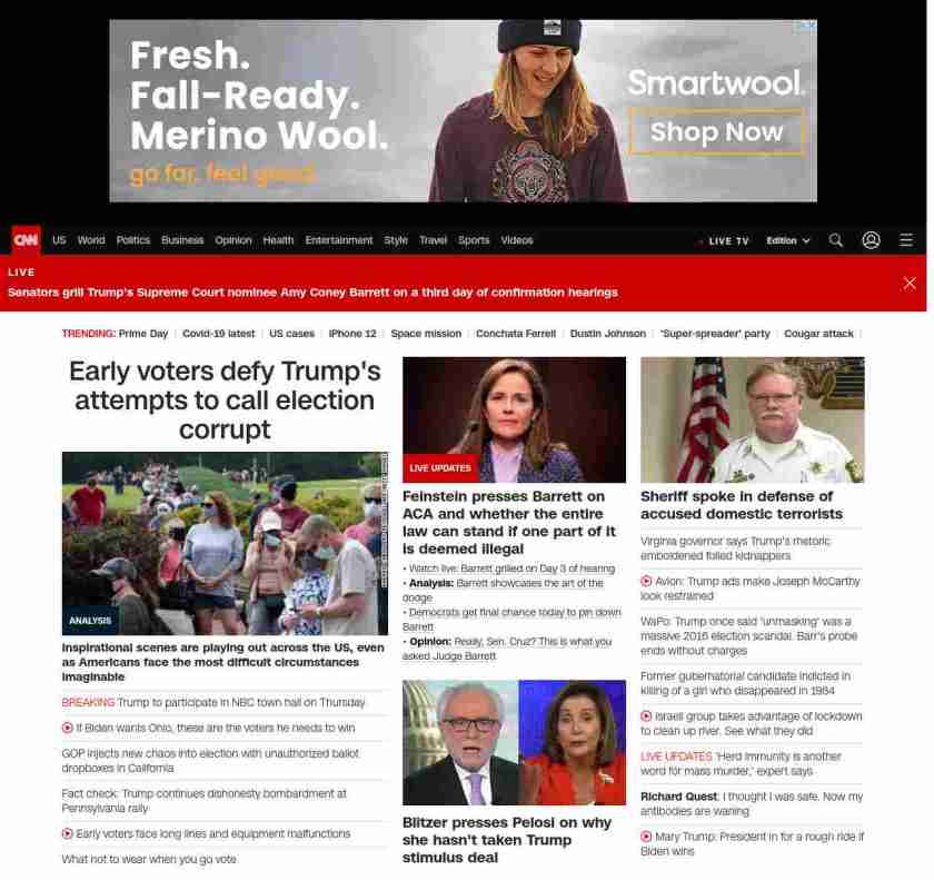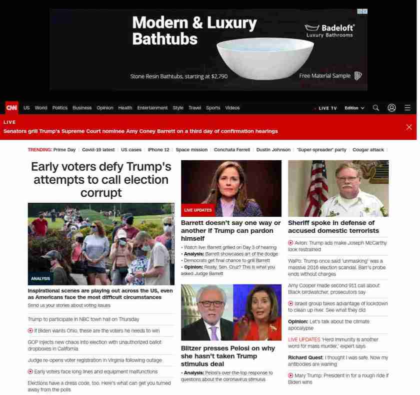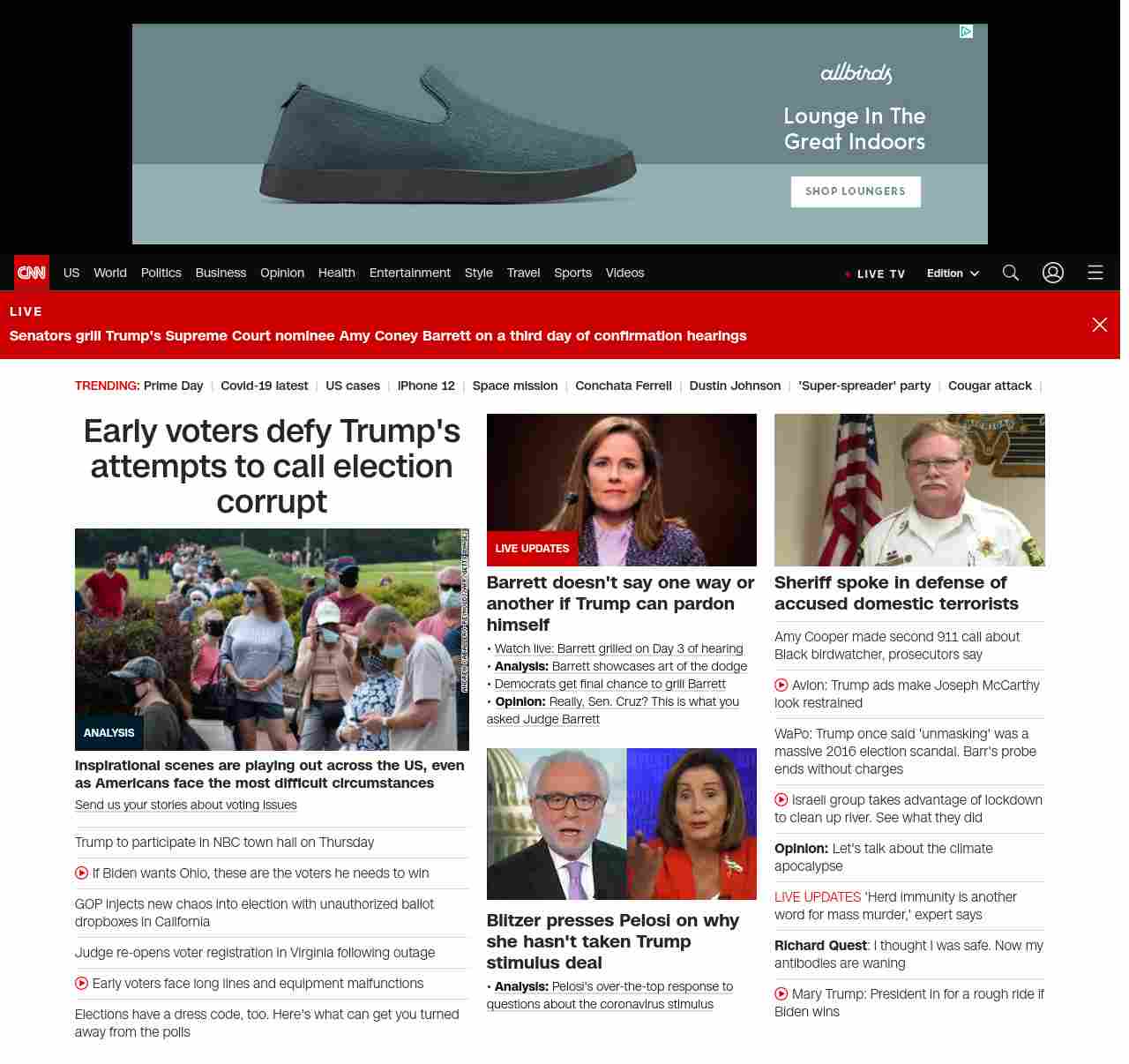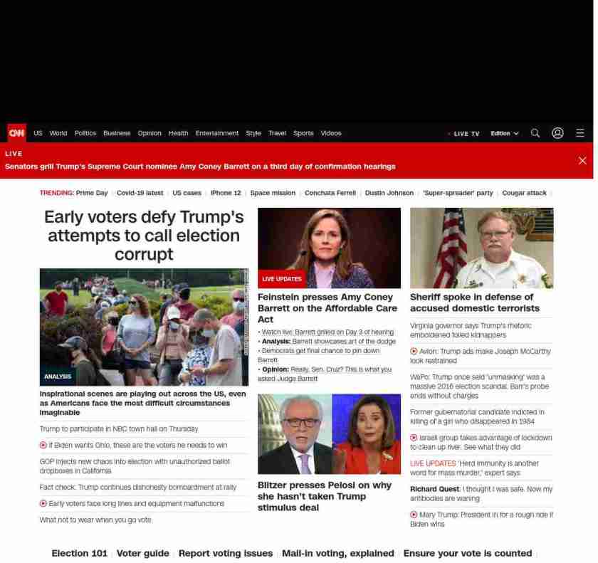 CNN1: FOXVCNN=|Early voters defy Trump’s attempts to call election corrupt| ((lubuntu at wor3))